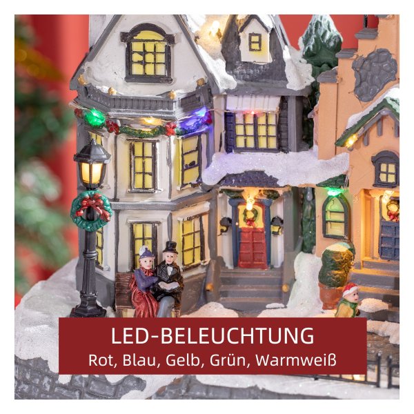 Bullet Point 2 | Feestelijk licht: deze kerststad: deze kerststad heeft 22 kleurrijke LED's (rood, blauw, geel, groen, warm wit), die feestelijke verlichting oproepen en je huis vullen met kerstmagie |