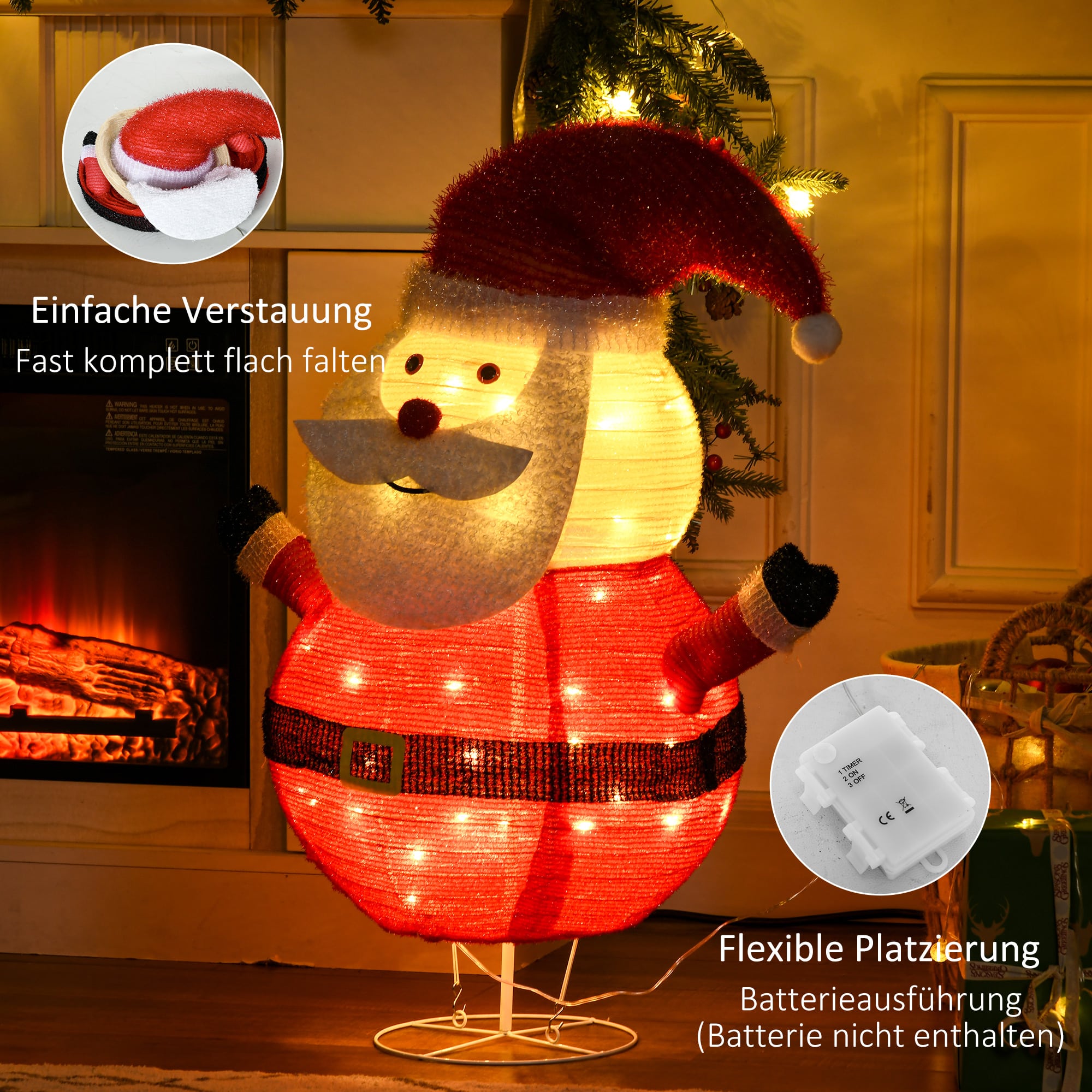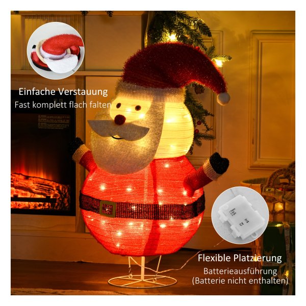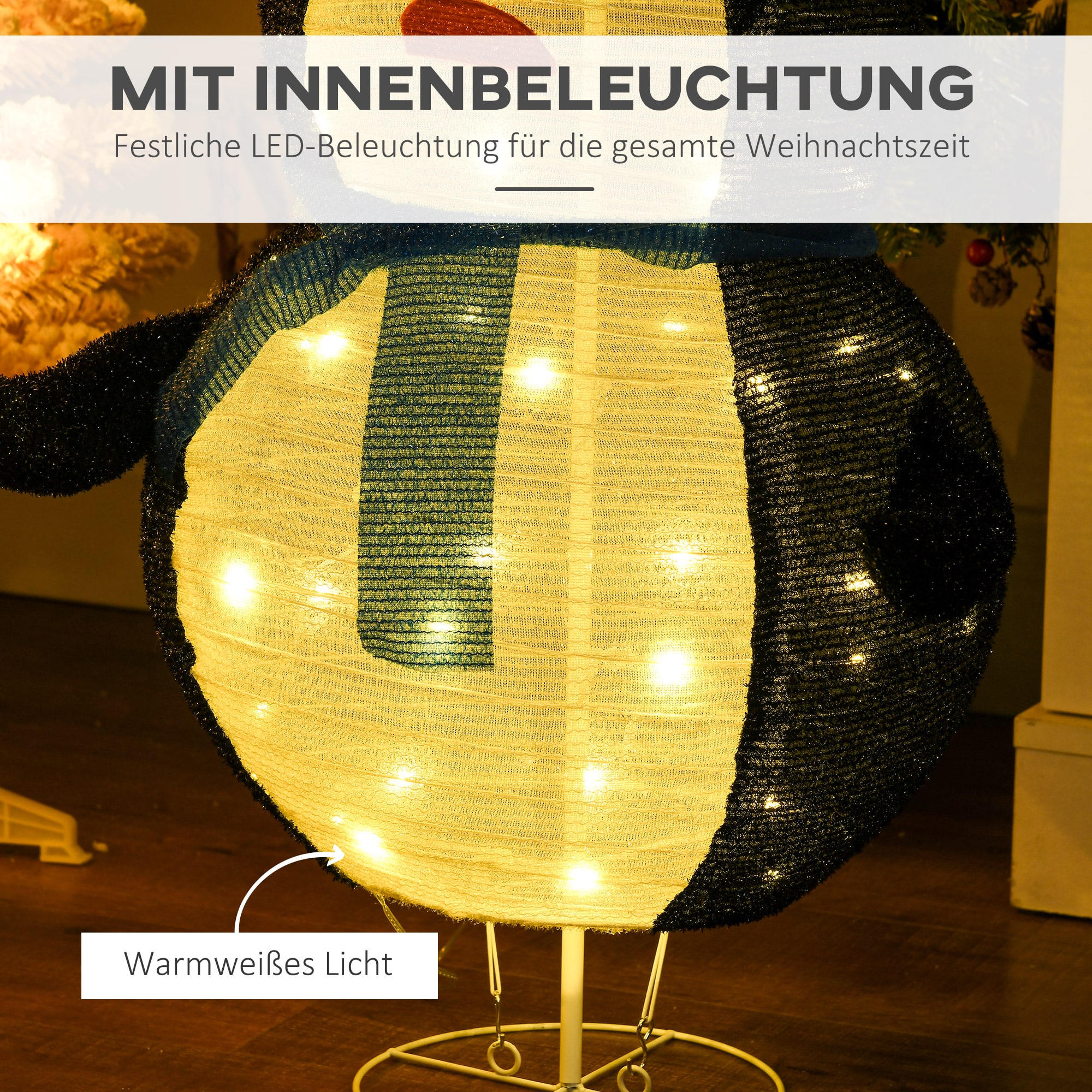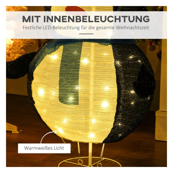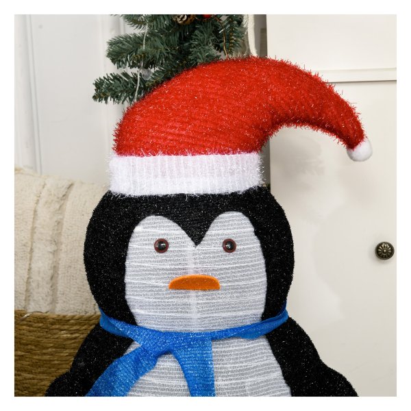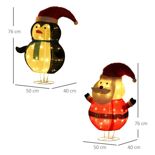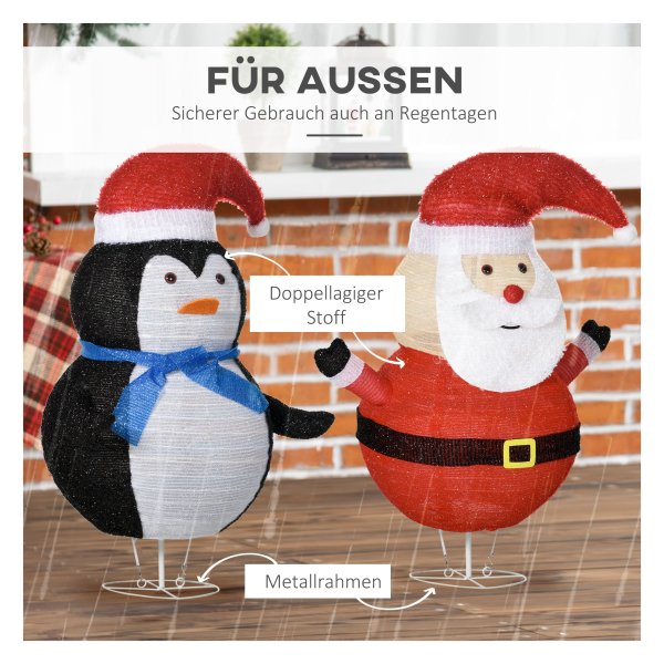 Bullet Point 1 | Santa Claus met pinguïn: de 76 cm lange kerstman en de pinguïn met rode hoed, blauwe sjaal en met zilverwit glitter die in de zon schittert |