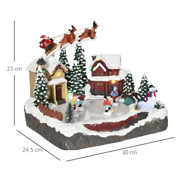 Bullet Point 1 | Kerstlandschap: deze met sneeuw bedekte, verlichte kerstdorp bevat twee huizen, kerstbomen, kerstman, rendier, slee, schaatssloper en sneeuwmensen, evenals vele andere details |