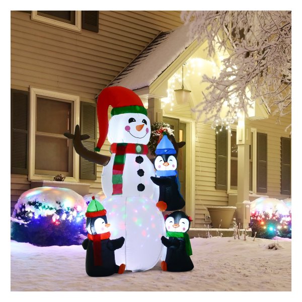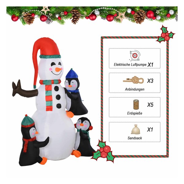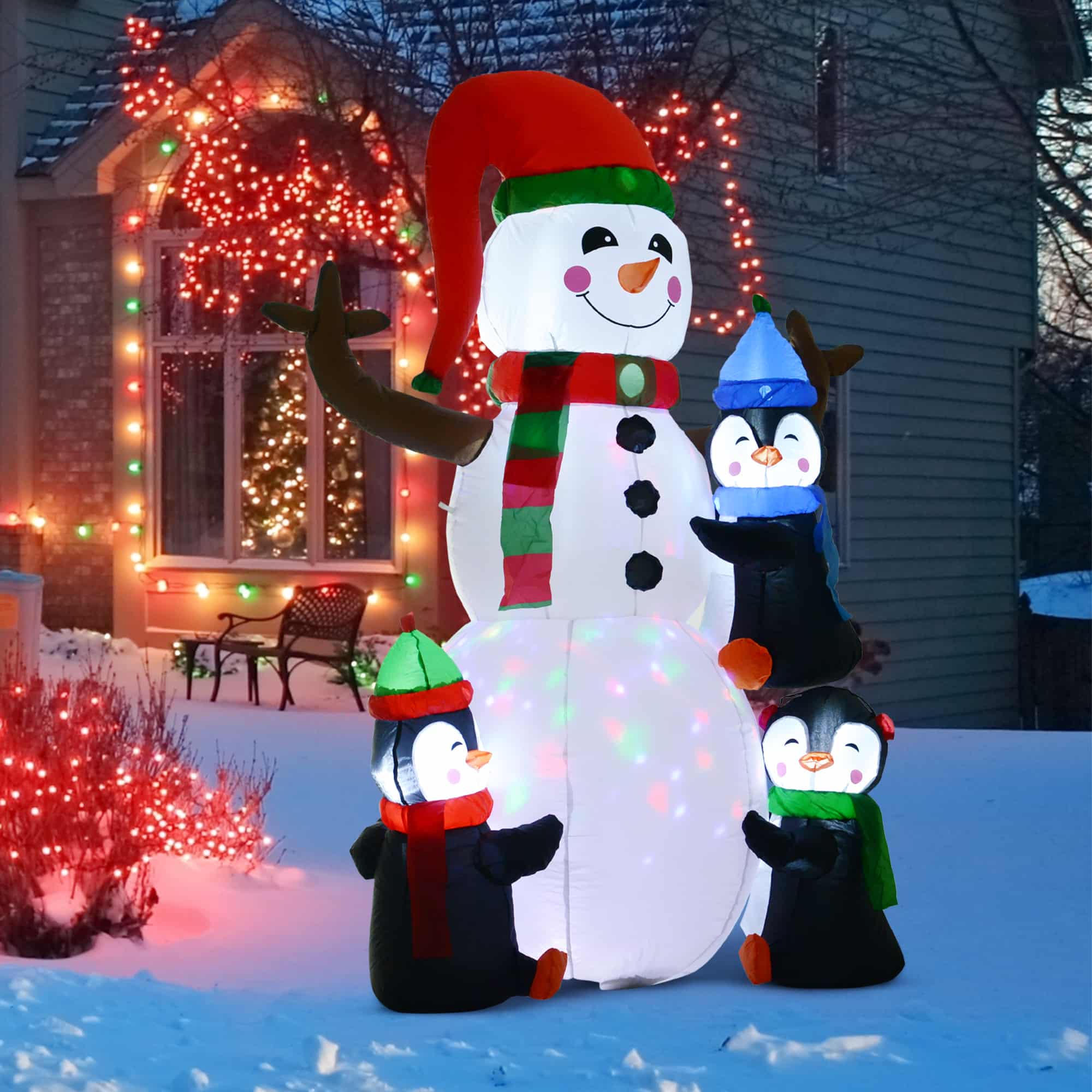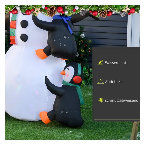 Bullet Point 1 | Geweldig kerstplezier: de 1,8 m grote sneeuwpop met zijn drie kleine pinguïnvrienden is een opvallende en schattige kerstdecoratie voor je voortuin of terras |