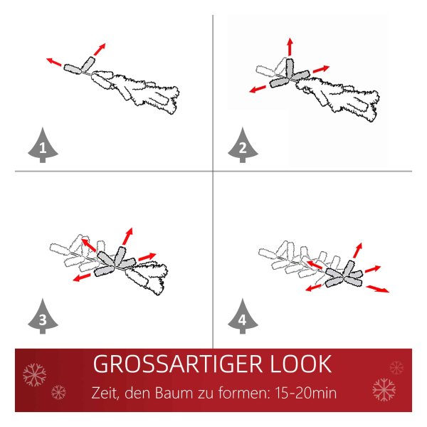 - Met 408 vertakkingspunten en automatisch uitklapbare takken is de montage van de kerstboom eenvoudig en snel.