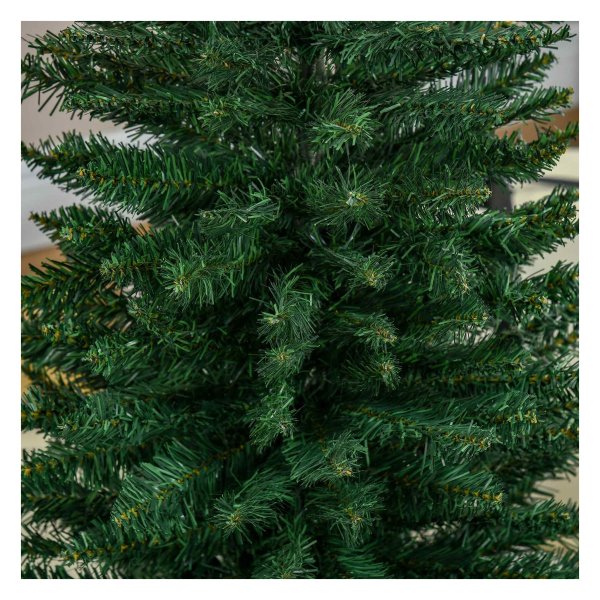Met een hoogte van 1,5 meter is deze kunstsparboom een indrukwekkende toevoeging aan je interieur. De realistische groene plastic takken geven de boom een vol en weelderig uiterlijk, waardoor het net lijkt alsof je een echte sparboom in huis hebt.