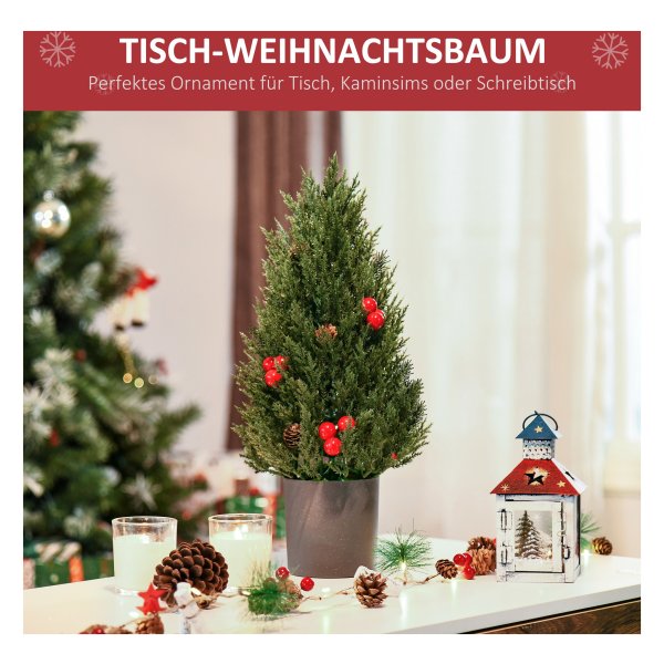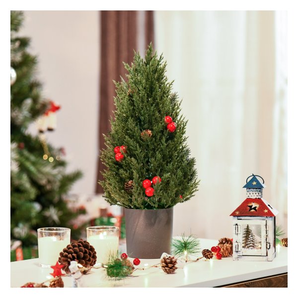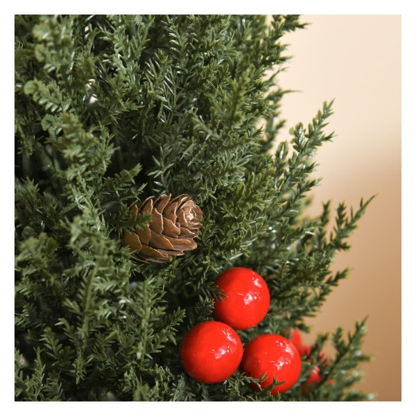Dankzij de mooie details zoals de rode bessen en dennenappels, zal deze kunstkerstboom een prachtig decoratief element zijn voor jouw kerstinterieur. Plaats hem als middelpunt van je tafel, op de open haard of op je bureau voor een gezellige kerstsfeer in huis.