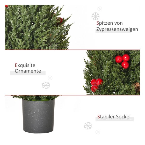 - Met 7 rode bessen, 6 dennenappels en 170 cipressentips gemaakt van plastic.