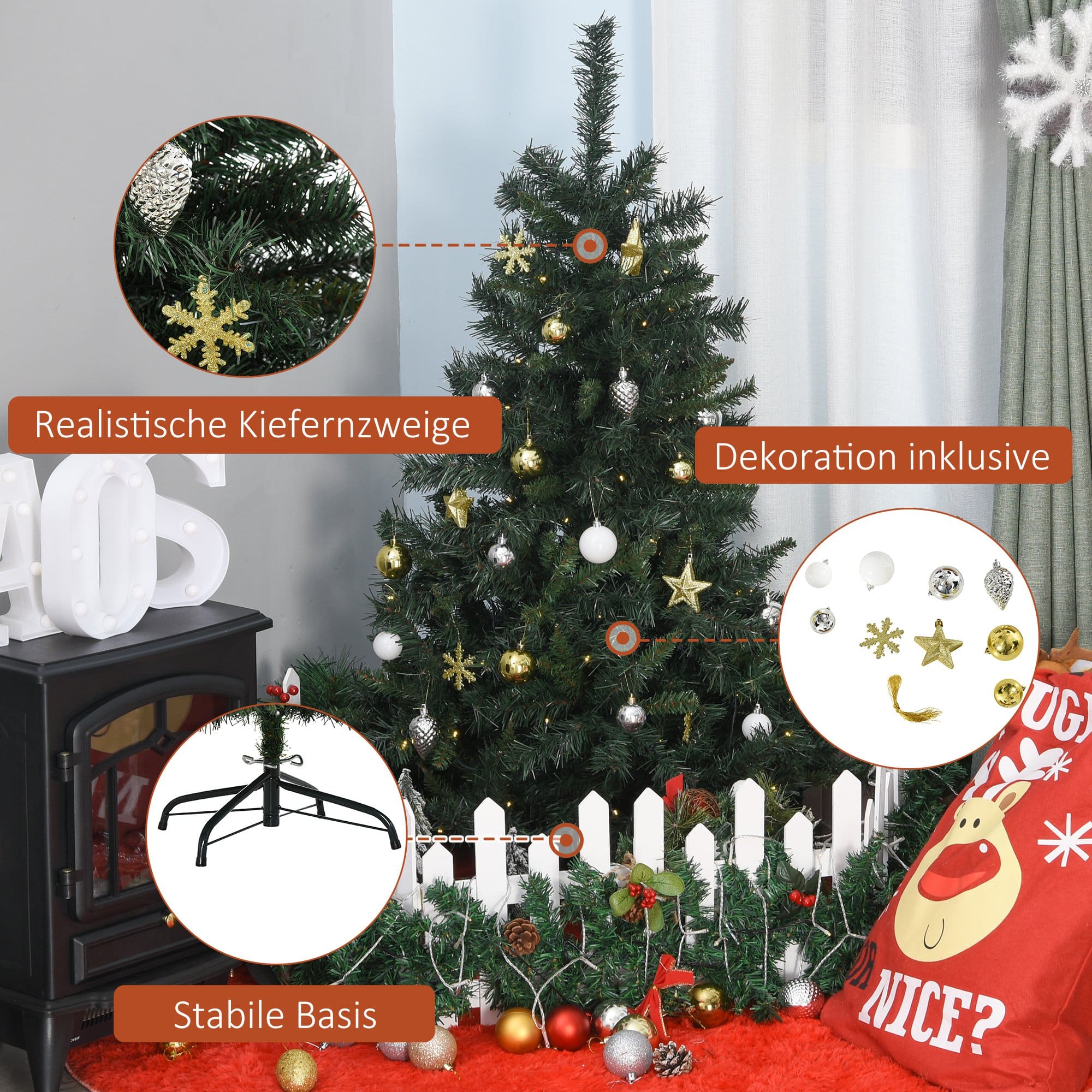 Bullet Point 1 | Kunstmatige kerstboom: de FIR is gemaakt van hoogwaardige, vlam -retardant PVC en meet 120 cm |