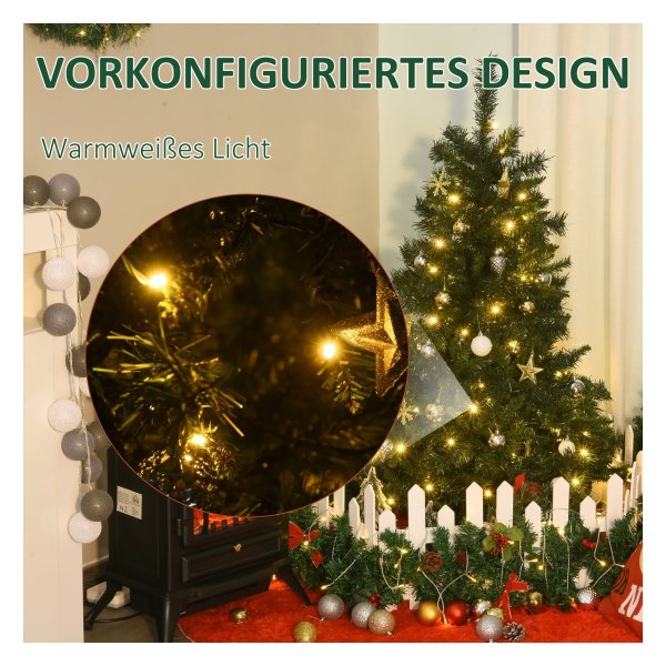 De kerstboom is voorzien van een lichtketting met 80 warme witte LED-lampjes die zorgen voor een gezellige en feestelijke sfeer in huis. De verlichting is energiezuinig en zorgt ervoor dat de boom in het donker prachtig oplicht, waardoor het een echt blikvanger is in je interieur.