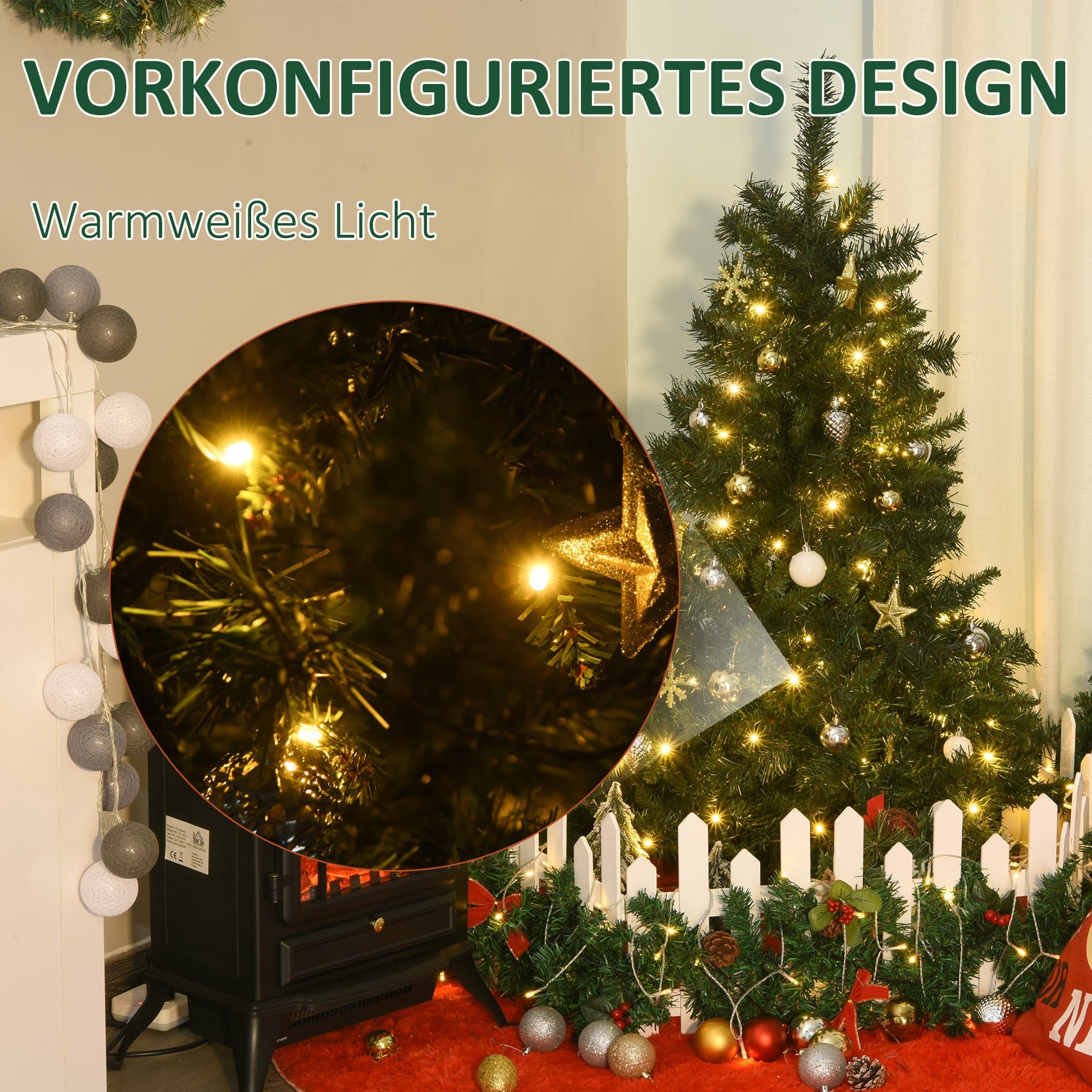 Bullet Point 5 | LED Illuminated: de 80 warme witte lichtgevende LED's zijn gehuisvest als een klassieke lichte keten in de boom en creëren een harmonieuze sfeer |