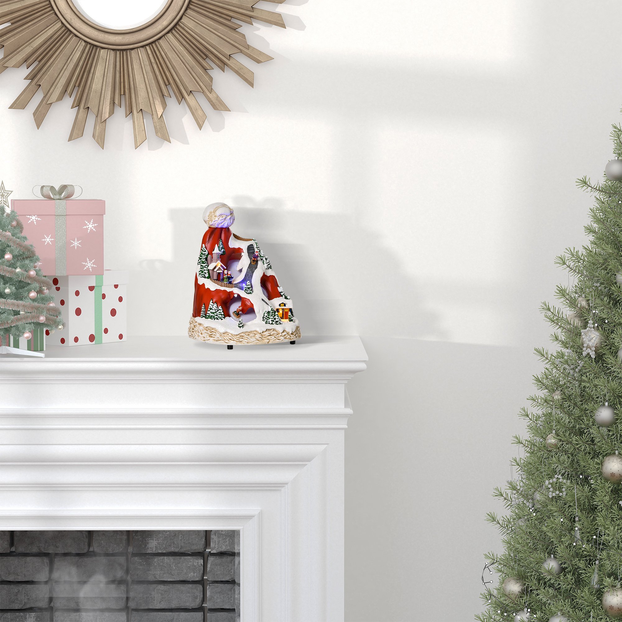 | Bullet Point 1 | Geweldige kerstachtergrond: dit animatieforp in de vorm van een kersthoed bevat 2 huizen, 4 skiërs, verschillende bomen en 2 mensen die de Bijbel vasthouden om een levendige kerstsfeer te creëren |