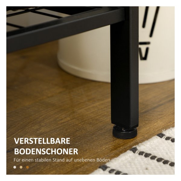Dankzij de 2 netwerkschoenen en opslagcontainers kunt u uw schoenen gemakkelijk opbergen en zelfs van schoenen wisselen terwijl u zit op de comfortabele schoenenbank. De verstelbare voeten zorgen voor stabiliteit en veiligheid, waardoor u zich geen zorgen hoeft te maken over wiebelende kapstokken.
