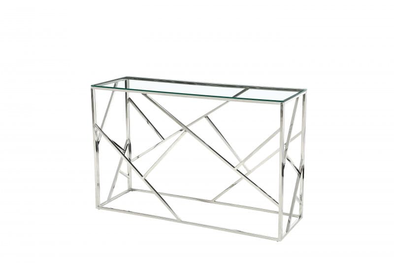 Bullet Point 3 | – – Console “Madagascar” heeft ruime opbergruimte met een slanke structuur van verchroomd metaal en gehard glas. |
