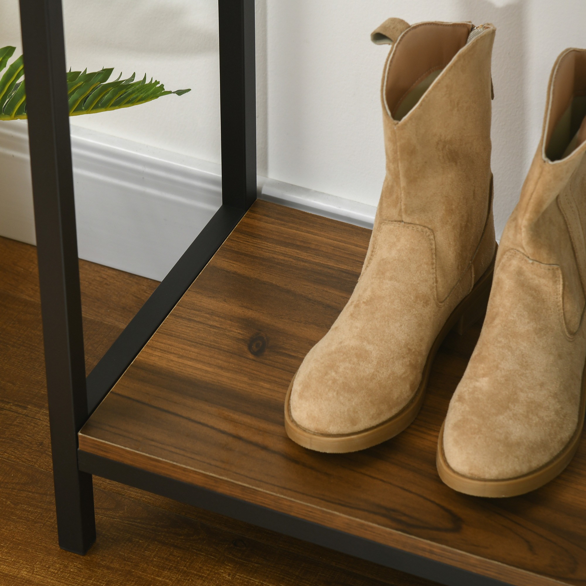 - De consoletafel heeft 2 open onderwerpen waarin u gemakkelijk uw portemonnees, sleutels en andere persoonlijke spullen kunt opbergen.