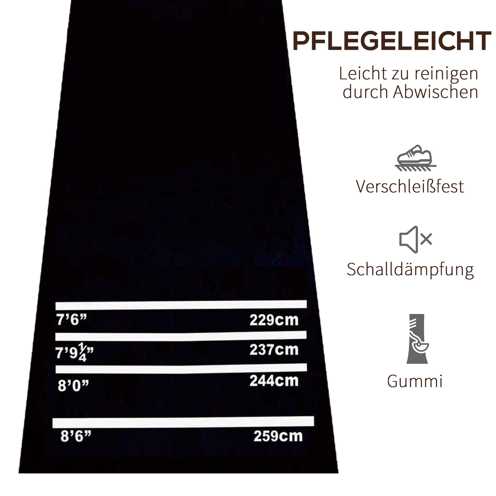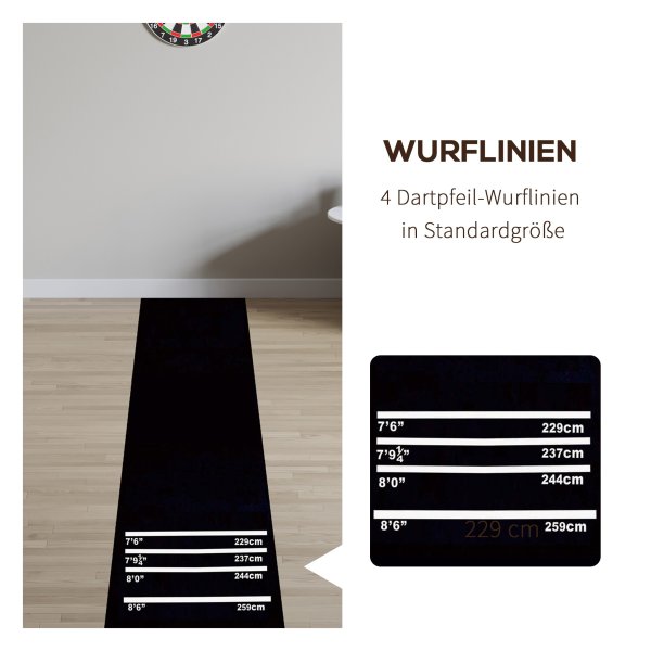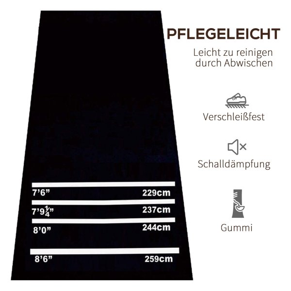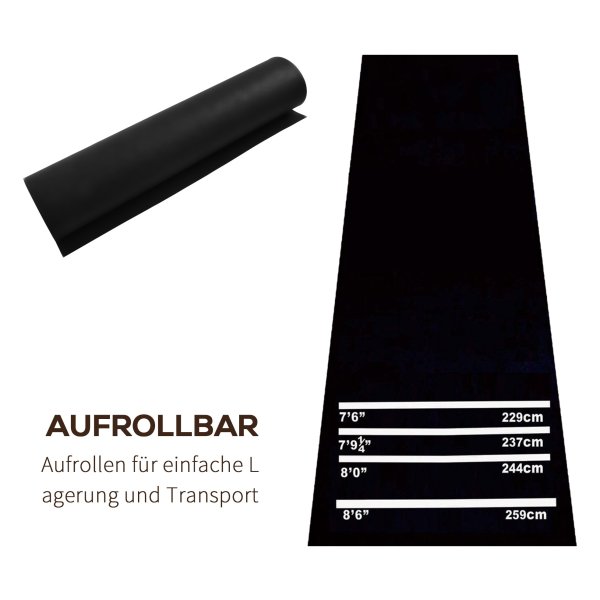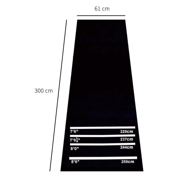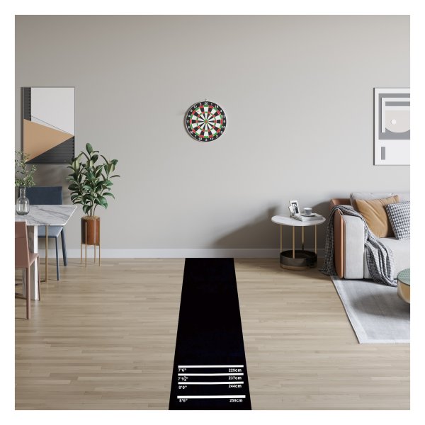 De Dartmat is gemaakt van duurzaam materiaal dat lang meegaat, zelfs bij intensief gebruik. De mat heeft originele toernooiafstanden gemarkeerd, zodat je altijd volgens de officiële regels kunt spelen. Daarnaast is de mat voorzien van het 2-in-1 principe, waardoor je hem ook kunt gebruiken als yogamat. Zo haal je het maximale uit dit veelzijdige product! Na gebruik rol je de mat eenvoudig op en berg je hem compact op, klaar voor de volgende dartavond of yogasessie.