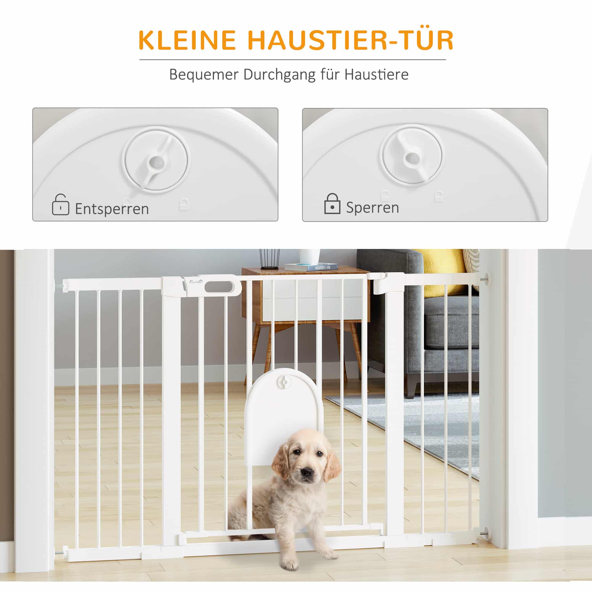 - Het hondenhekje is eenvoudig te installeren en past in verschillende maten ruimtes dankzij de verstelbare breedte van 75 cm tot 131 cm.