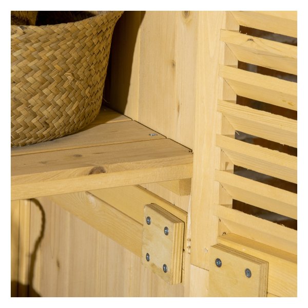 Bestel nu de steigerhouten kast met 4 compartimenten en geniet van een georganiseerde en stijlvolle opbergoplossing voor al uw tuingereedschap en -accessoires.