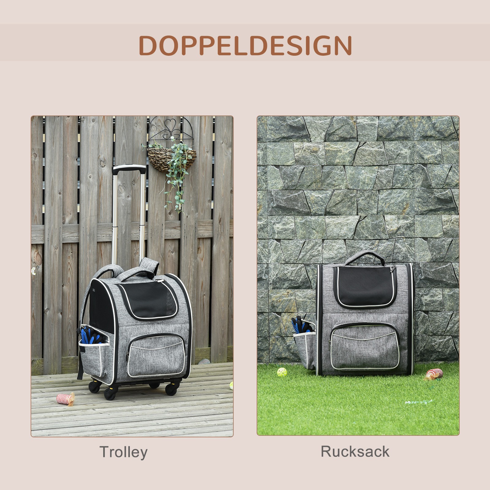 Draagtas – Huisdierplezier – Op wielen – 2-in-1 – Grijs