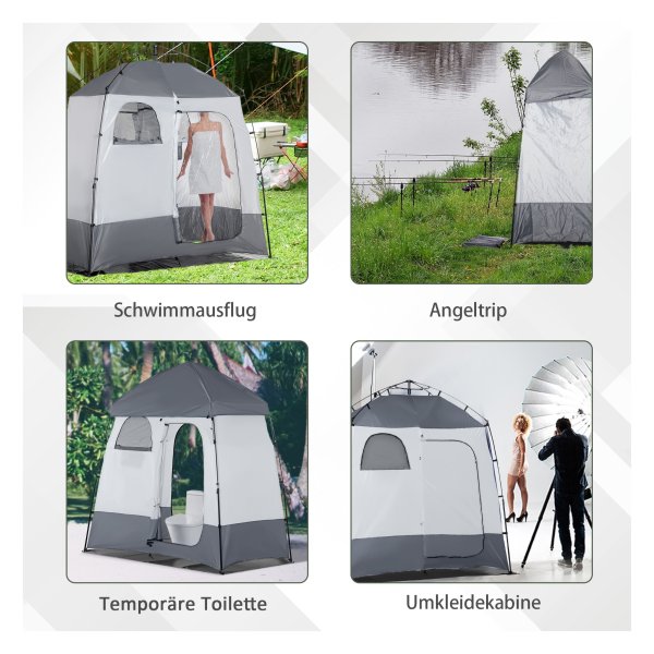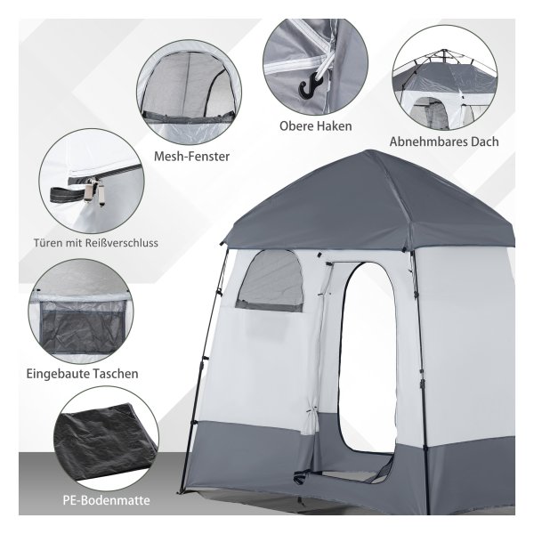 Douchetent – Kampeerton – 3 deuren, 2 ramen – Grijs