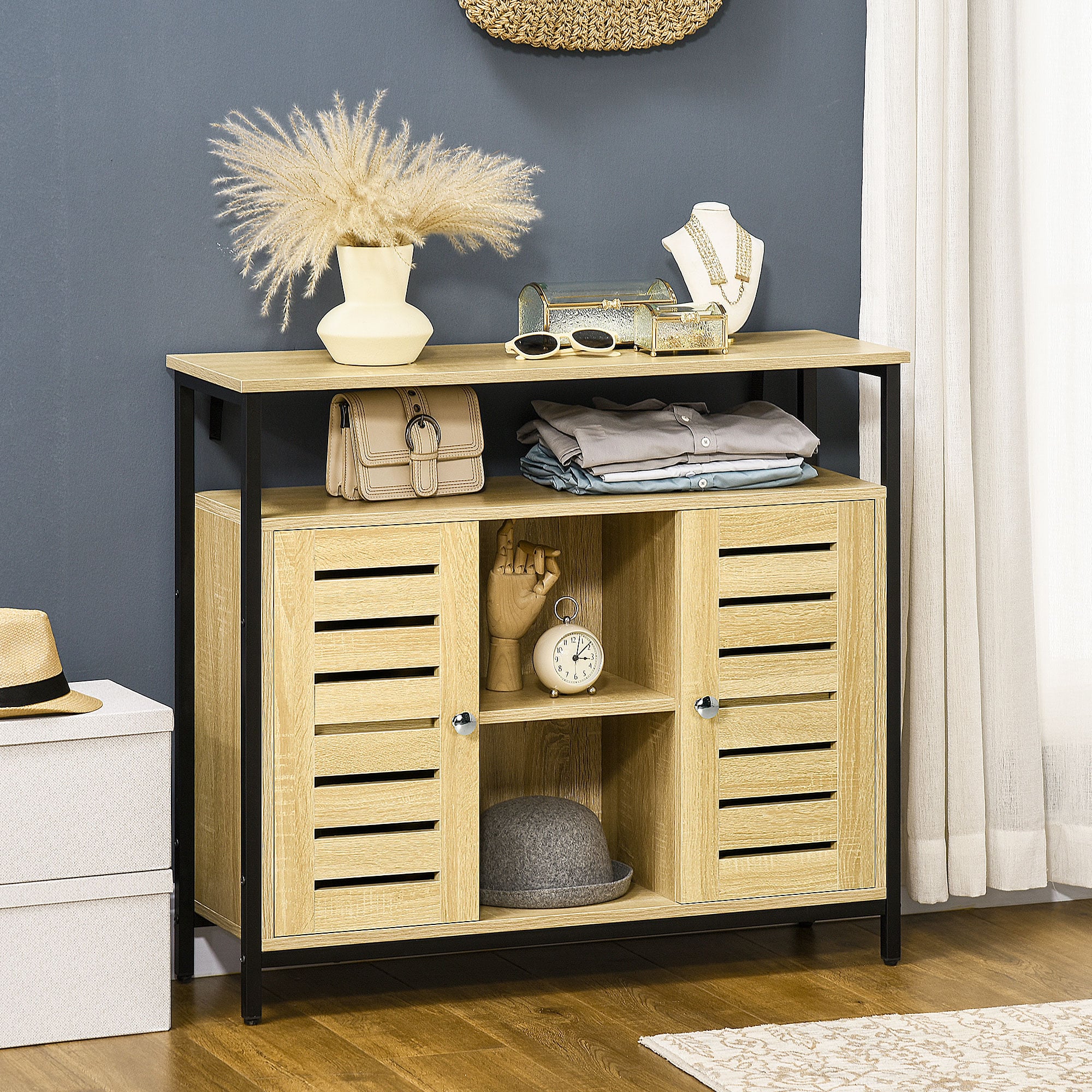 - Met een grote opslagruimte, een open plank, twee open vakken en twee kasten is dit dressoir ideaal voor het opbergen van al uw spullen.