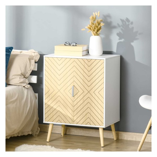 - Het gestructureerde patroon op de voordeur geeft dit kastje een uniek en trendy ontwerp
