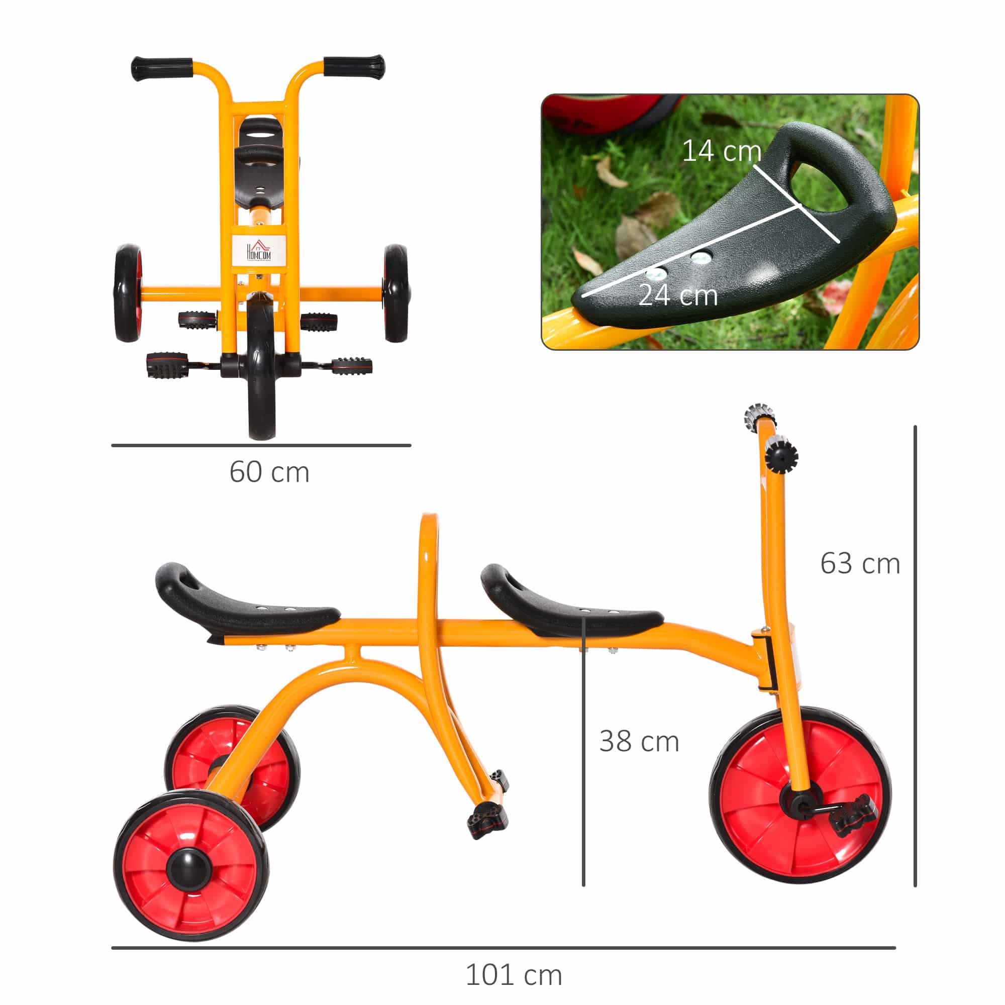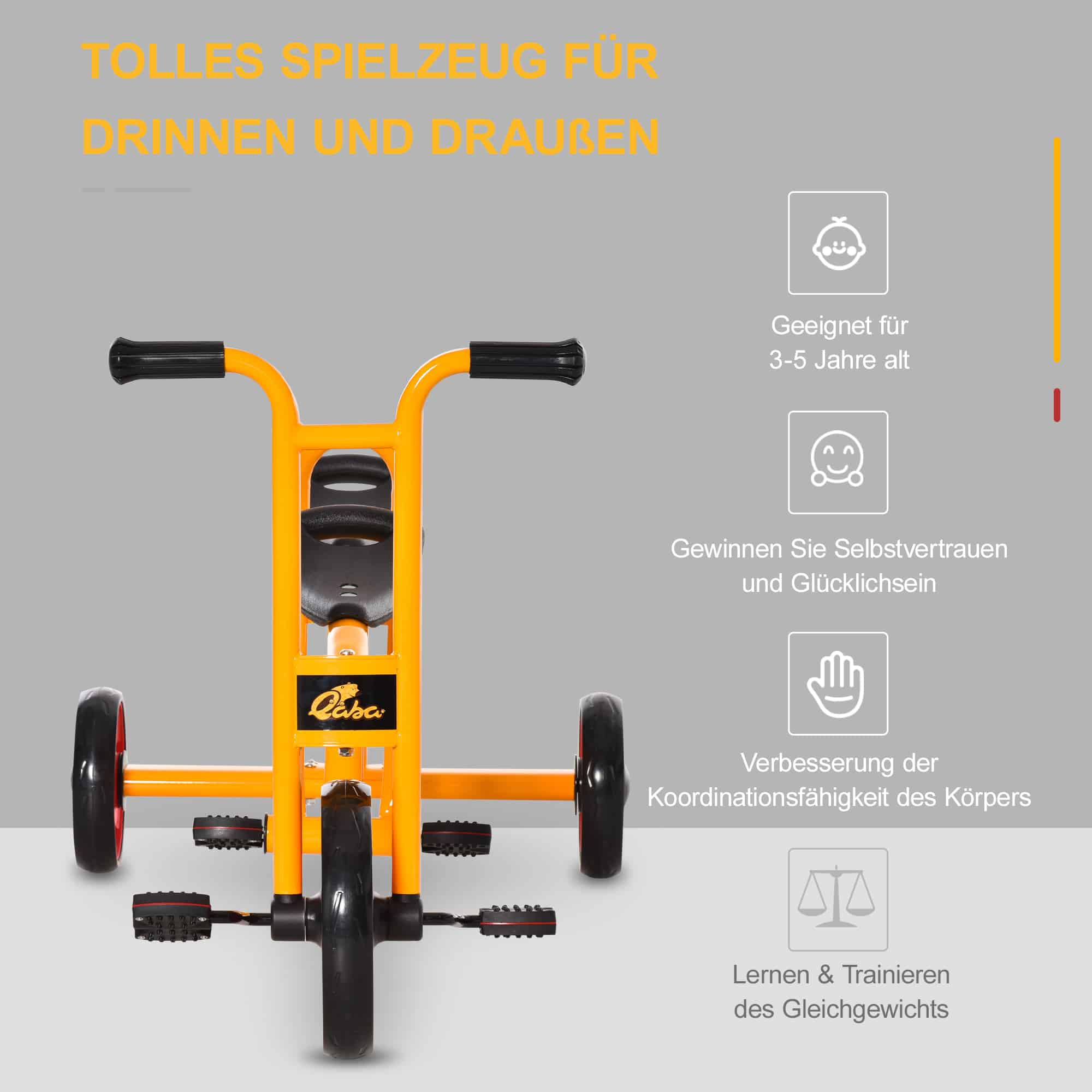 Met twee comfortabele zitjes maakt deze driewieler het eenvoudig om twee kinderen tegelijk mee te nemen. Terwijl de een voorin zijn eigen avontuur beleeft, kan de ander comfortabel op de achterbank meerijden. Perfect voor gezinsuitstapjes of spelen met vrienden.