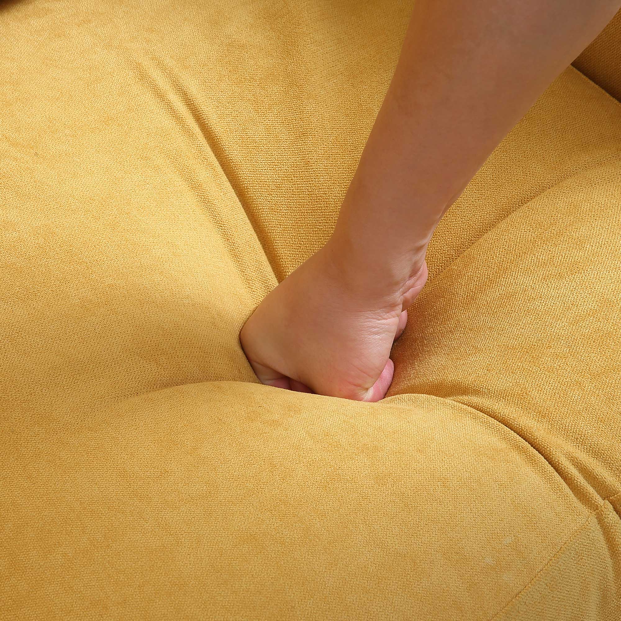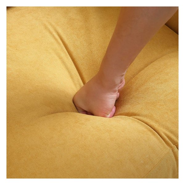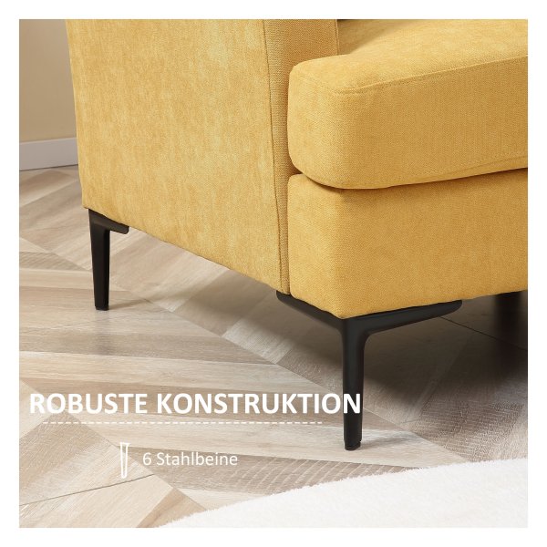 Bullet Point 1 | Breng elegantie naar uw huis: het oppervlak van grijze stof in fluwelen optiek en de benen gemaakt van zwart staal geven uw woonkamer een retro -look – een klassiek en tijdloos ontwerp dat nooit uit de mode komt |