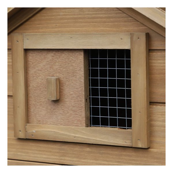 - Praktisch glijdend venster zorgt voor goede ventilatie en natuurlijk licht in het kippenhok.