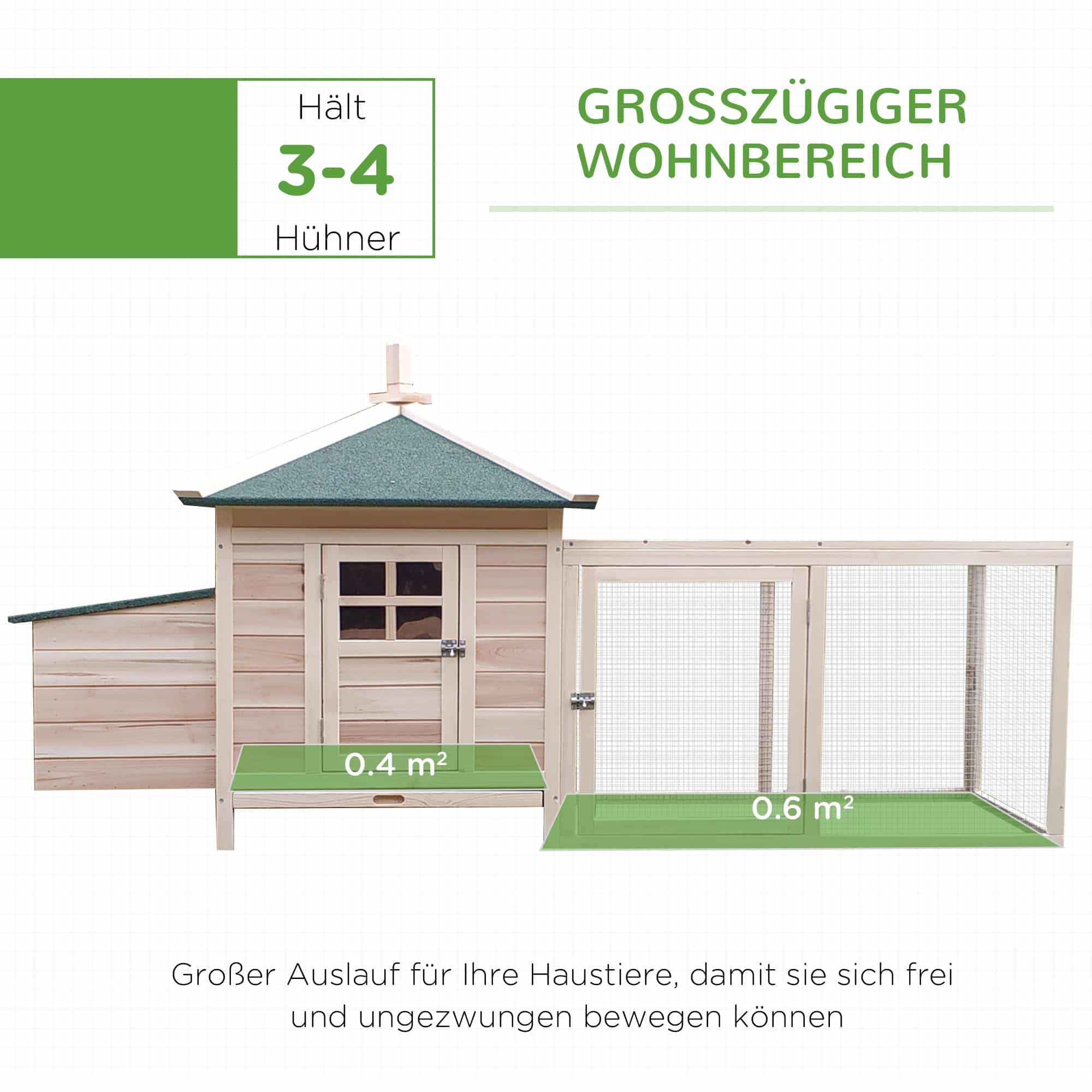 - Met het asfalt dak zijn uw kippen beschermd tegen regen en zonlicht, wat hun welzijn bevordert.