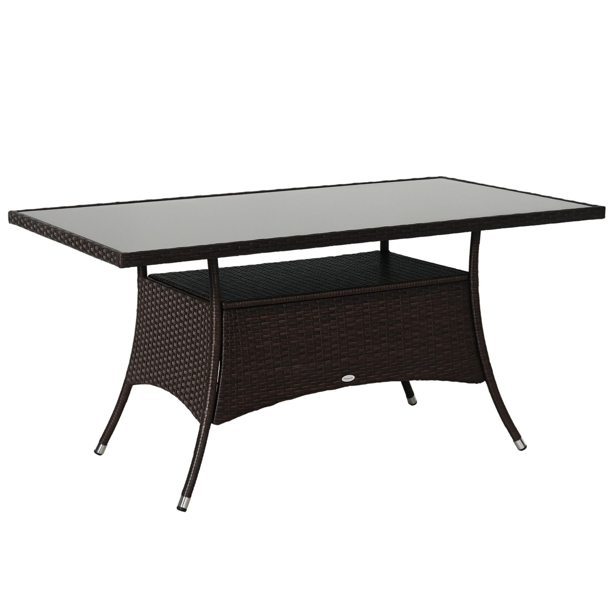 Geniet van de zomerse dagen met de Tuineettafel van LuxeLife, gemaakt van hoogwaardig poly rattan in een stijlvolle bruin en zwart kleurencombinatie. Deze tafel is ideaal voor elke buitenruimte, of het nu je tuin of terras is. Met een tafelblad van robuust veiligheidsglas en tafelpoten van massief metaal, is deze tuineettafel extreem stabiel en duurzaam, waardoor je er jarenlang van kunt genieten.