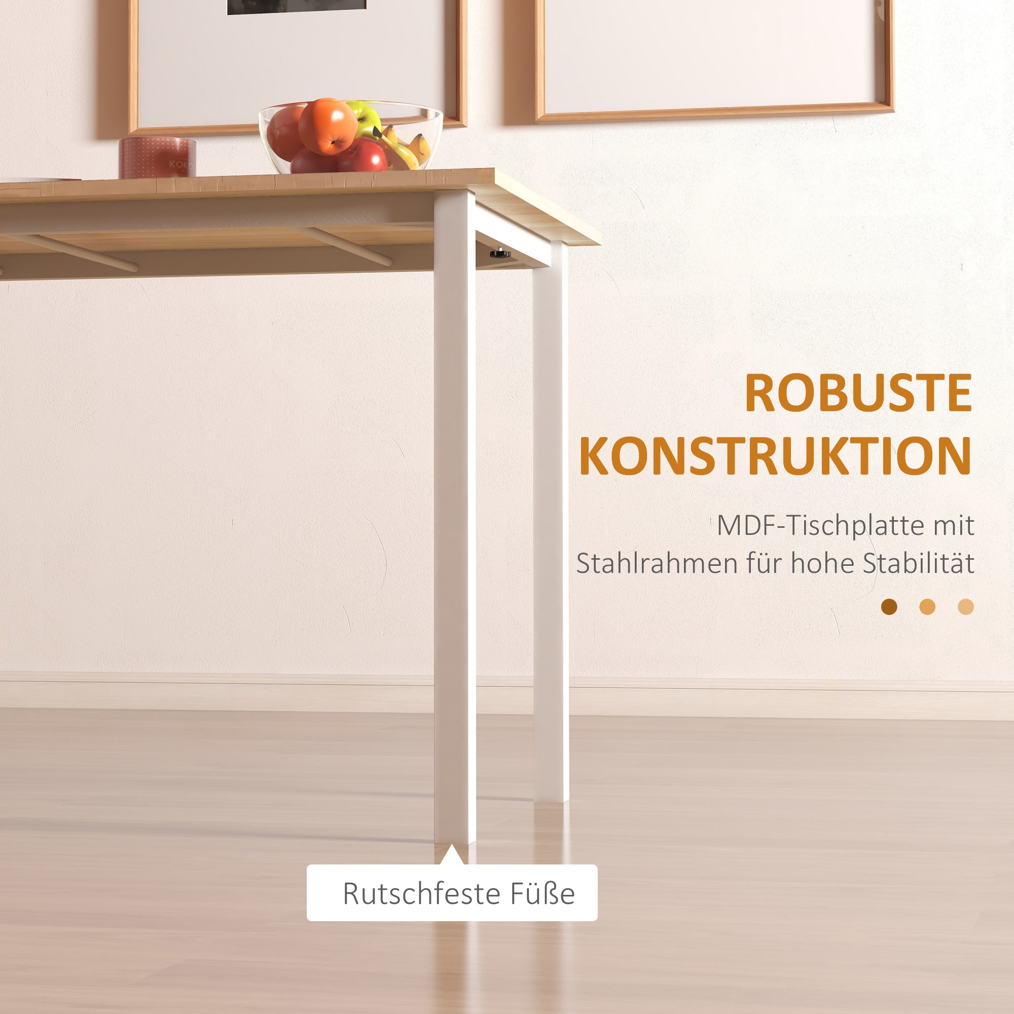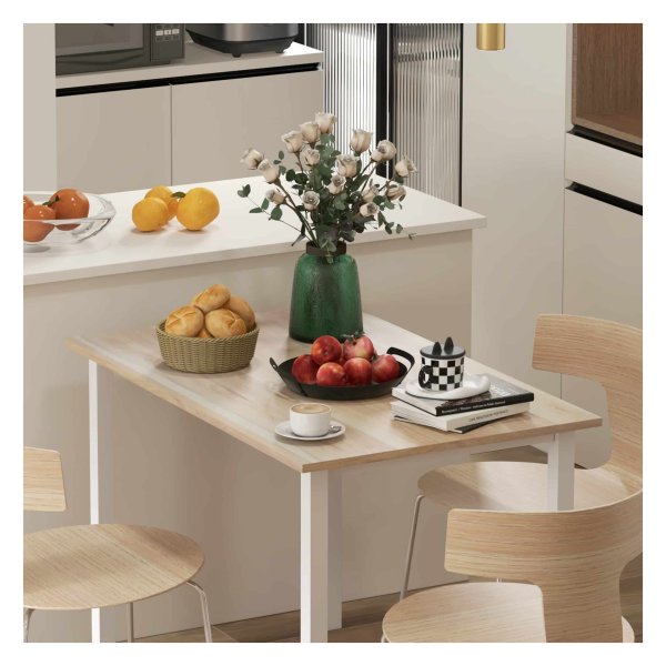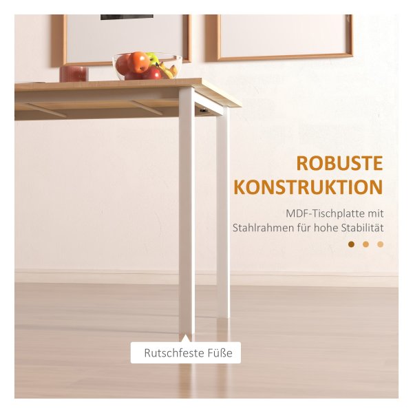 De melamine-afwerking van het tafelblad maakt het gemakkelijk schoon te maken, waardoor je tafel er altijd als nieuw uitziet. De stabiele stalen poten zorgen voor extra stabiliteit, zodat je onbezorgd kunt genieten van je maaltijd of activiteiten zonder dat de tafel wiebelt.