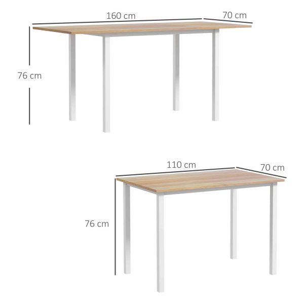 Deze eettafel is gemaakt van hoogwaardige materialen zoals MDF en staal en heeft een bruine kleur die perfect past bij verschillende interieurstijlen. Met zijn uitbreidbare afmetingen van 160l x 70b x 76h cm biedt deze tafel voldoende ruimte voor al je eetkamerbehoeften.