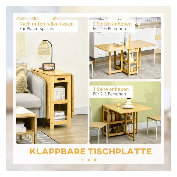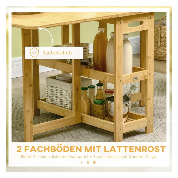 Eettafel – RusticLiving – Opbergvak – Verstelbare poten – Bamboe