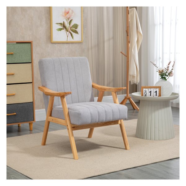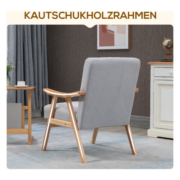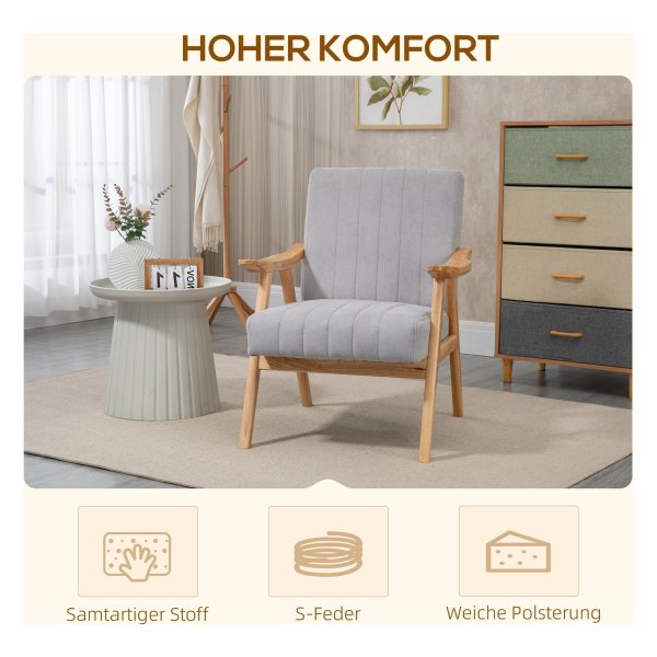 Fauteuil — Scandinavisch design – fluweel-look – lichtgrijs
