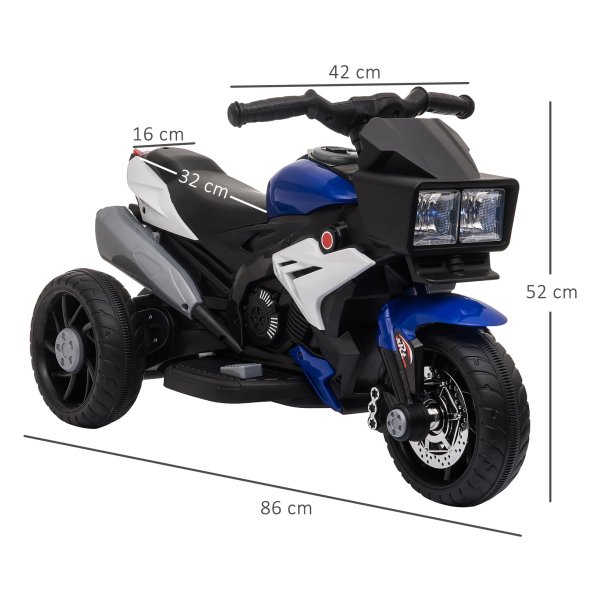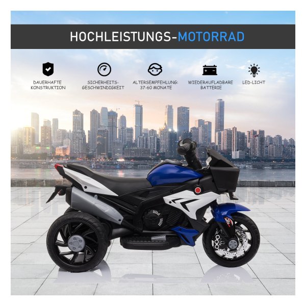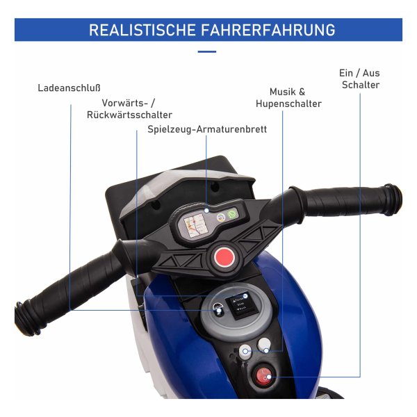 Maak je kinderen blij en geef ze een spannende en veilige rit met deze kindermotorfiets in blauw en wit. Met een beperkte topsnelheid van 3 km per uur kunnen kinderen veilig rijden en plezier hebben terwijl ze zich een echte motorrijder voelen.