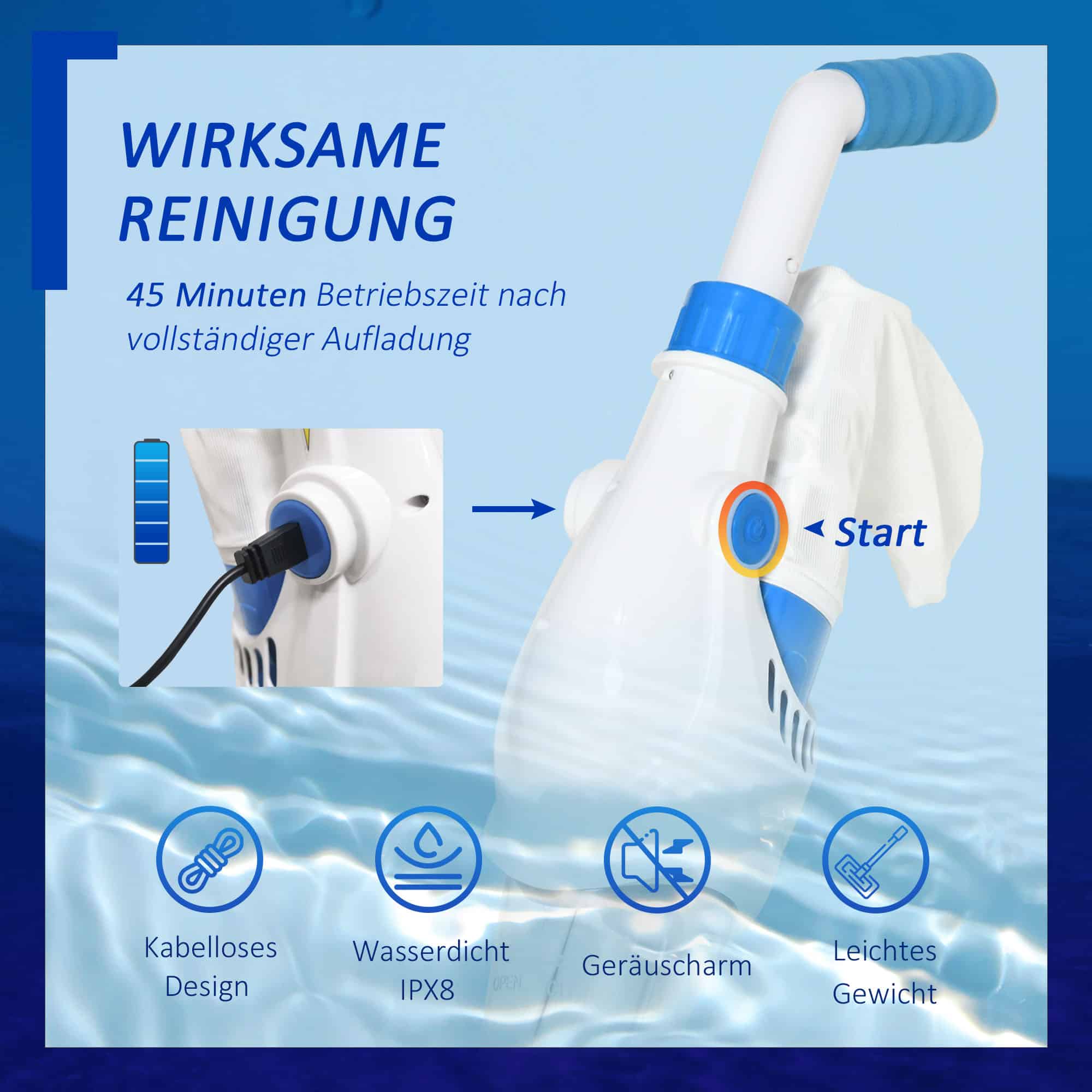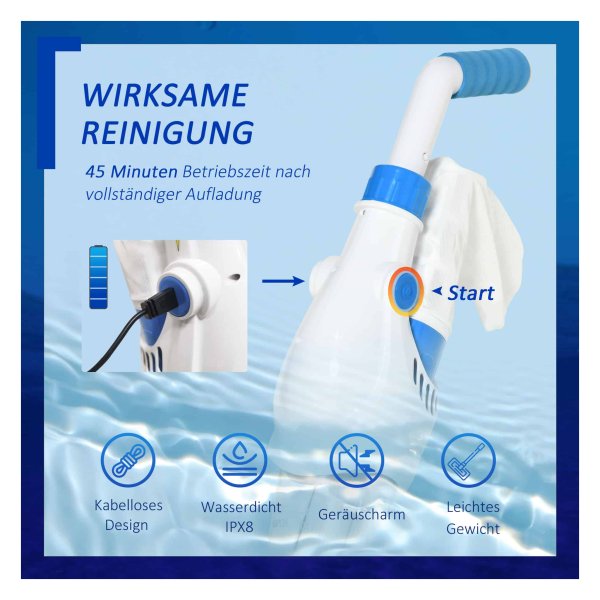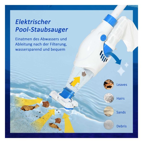 De Zwembadstofzuiger wordt geleverd met een elektrisch zwembad vacuümreiniger, een filterzak, een lader en instructies voor gebruik. Zo kunt u direct aan de slag met het reinigen van uw zwembad en genieten van een zorgeloos zwemseizoen.