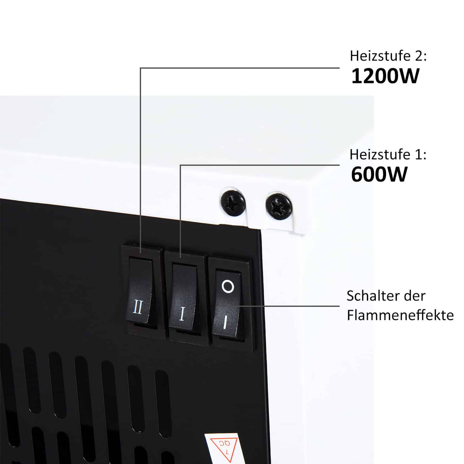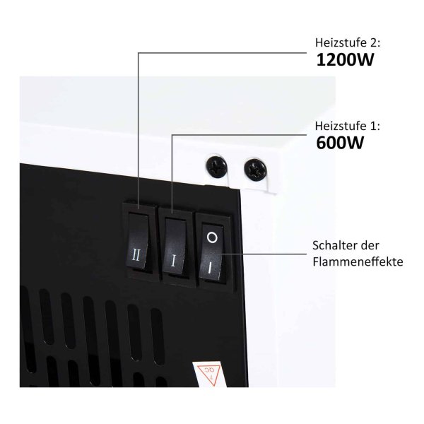 De Elektrocamine biedt twee verwarmingsniveaus (600/1200W) om uit te kiezen, waardoor je altijd de juiste warmte-instelling kunt vinden. De thermo-afsluiting zorgt voor bescherming tegen oververhitting, terwijl het sterke geharde glas zorgt voor een veilig gebruik.