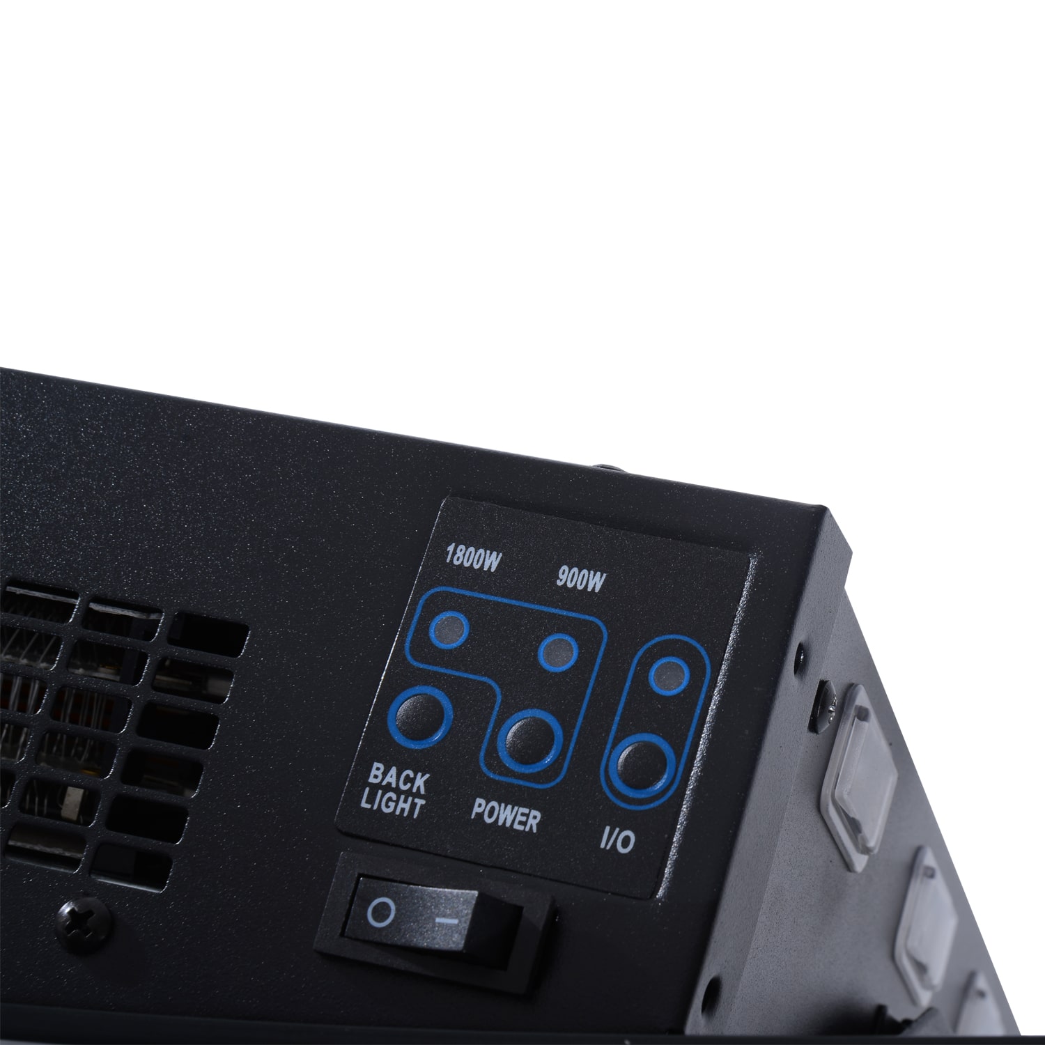 Niet alleen zorgt de wandhaard voor een gezellige sfeer, maar ook voor extra warmte op koude dagen. Met 2 selecteerbare verwarmingsniveaus van 900W en 1800W kunt u zelf bepalen hoe warm u het wilt hebben in de ruimte. Bovendien is de haard uitgerust met 18 LED’s als achtergrondverlichting, wat zorgt voor een prachtige gloed in de kamer.