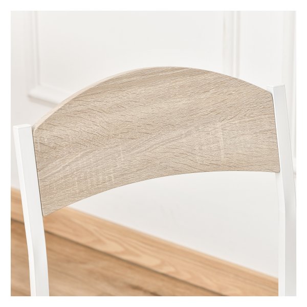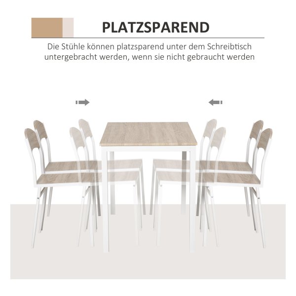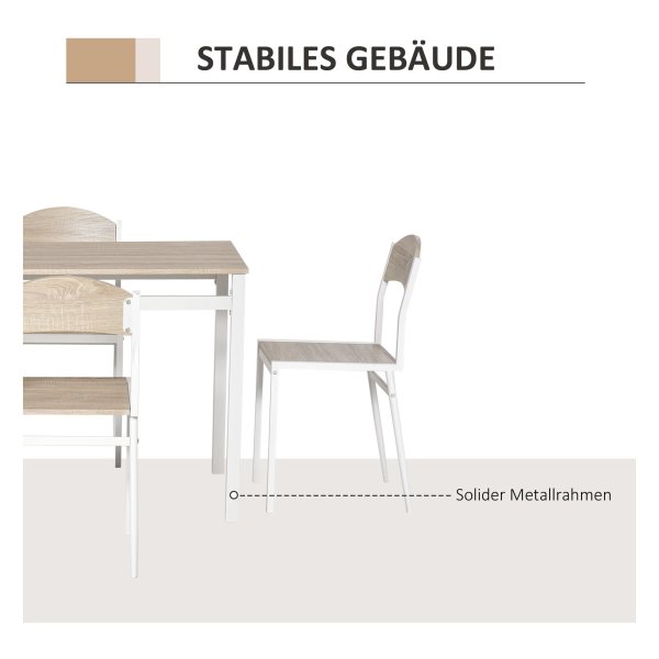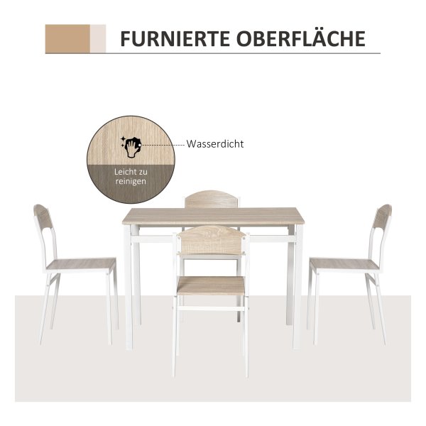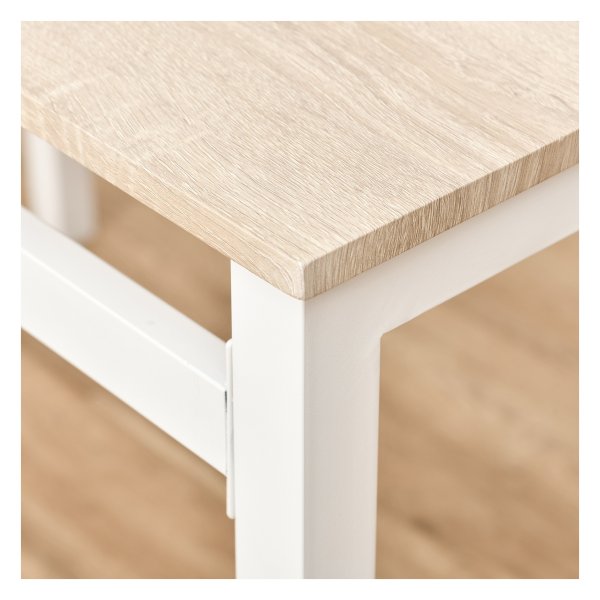 Gemaakt van hoogwaardig MDF en een stabiel stalen frame, garandeert deze eetkamerset een lange levensduur. De oppervlakken zijn extreem gemakkelijk te reinigen, waardoor onderhoud een eitje is.