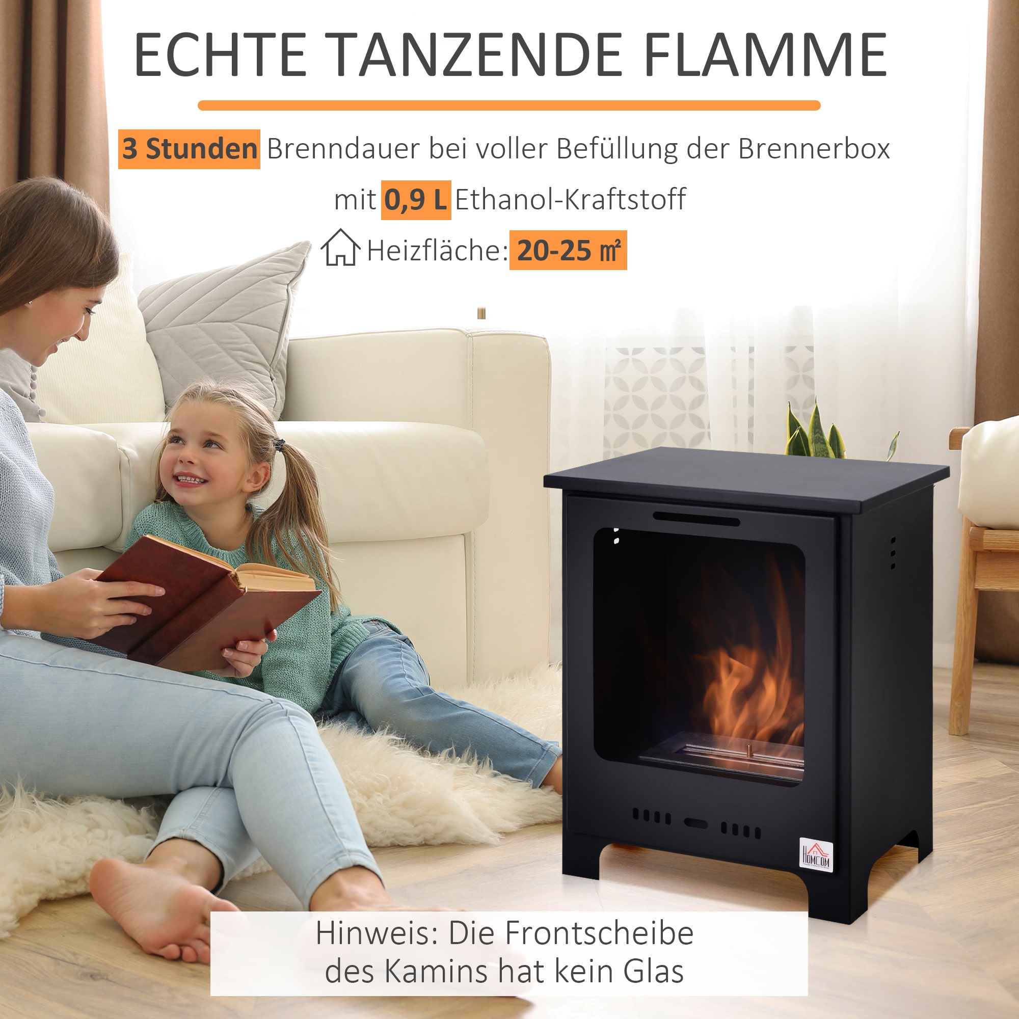 Hoewel deze open haard voornamelijk bedoeld is voor decoratieve doeleinden, kunt u nog steeds genieten van de informele verwarmingsfunctie die het biedt. Let wel op dat deze open haard niet geschikt is om te koken of uw huis te verwarmen. Bovendien wordt ethanol niet meegeleverd, dus het wordt aangeraden om alcohol van 95% te gebruiken en deze bij te vullen terwijl het vuur nog brandt.