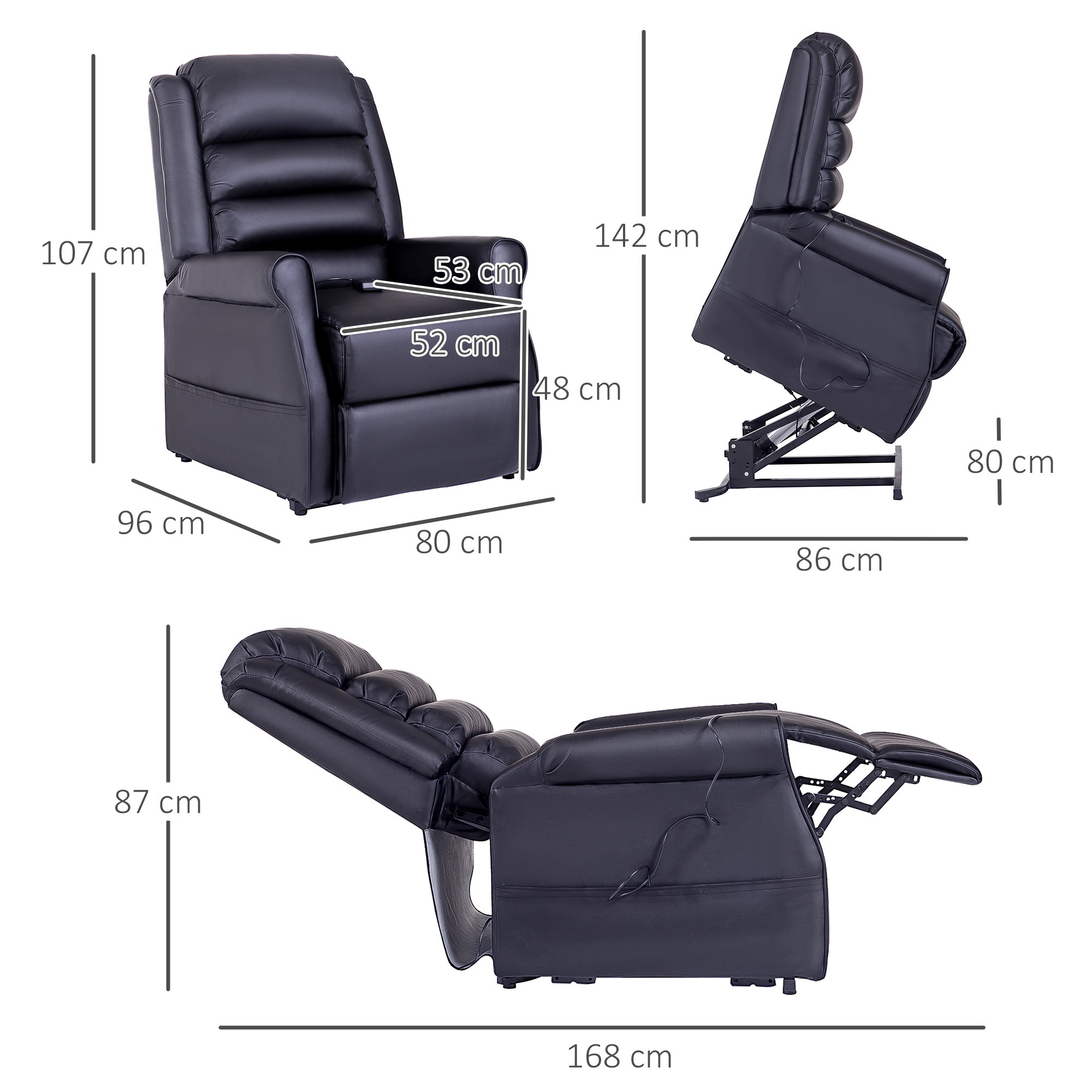 - Seniorenpositie: 82L x 96B x 107H cm