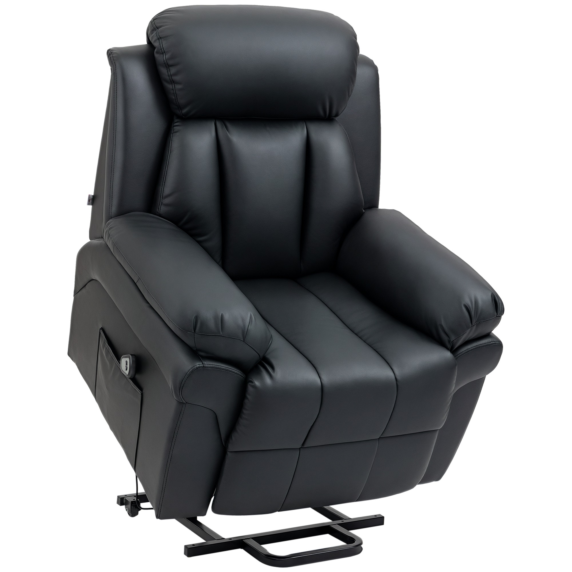 De Elektrische Relaxfauteuil is zwart van kleur en gemaakt van hoogwaardige materialen zoals synthetisch leer, schuim, staal en plastic. De afmetingen zijn: