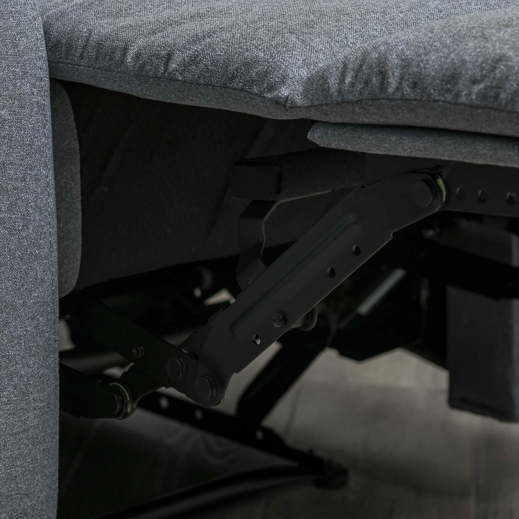 De fauteuil is bekleed met polyester stof en een linnenafdekking, wat zorgt voor een luxe uitstraling. De totale afmetingen van de fauteuil zijn 90B x 96T x 98HCM in rechte positie en 90b x 163t x 78hcm wanneer u wilt liggen.