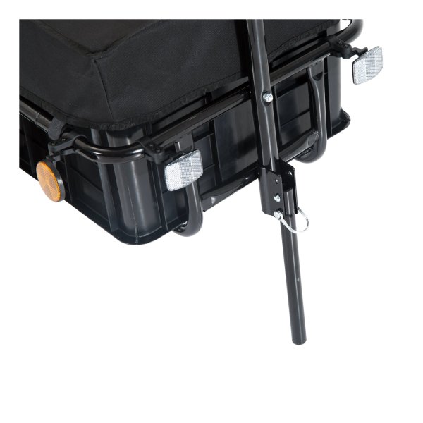 Dankzij de fietsaanhanger geniet je van een veilige en gemakkelijke manier om zware ladingen te vervoeren tijdens al jouw fietsavonturen. Het veersysteem zorgt voor een comfortabele rit, terwijl de ruime laadruimte voldoende plaats biedt voor al jouw spullen. De zwarte afdekking beschermt je lading tegen wind en regen, zodat je altijd zorgeloos op pad kunt gaan.