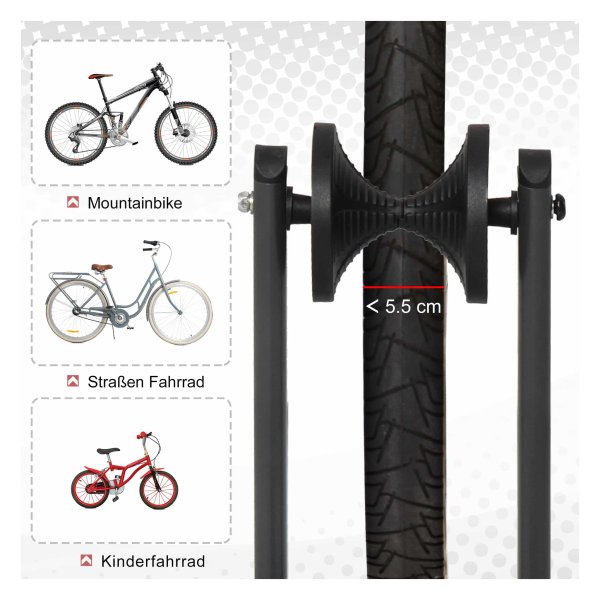 De betrouwbare fietsstandaard van Zaza Home zorgt ervoor dat uw fiets altijd stevig staat en de vloer niet beschadigd raakt. Gemaakt van stabiel metaal, is de standaard geschikt voor alle typen fietsen met banden van minder dan 5,5 cm breed.
