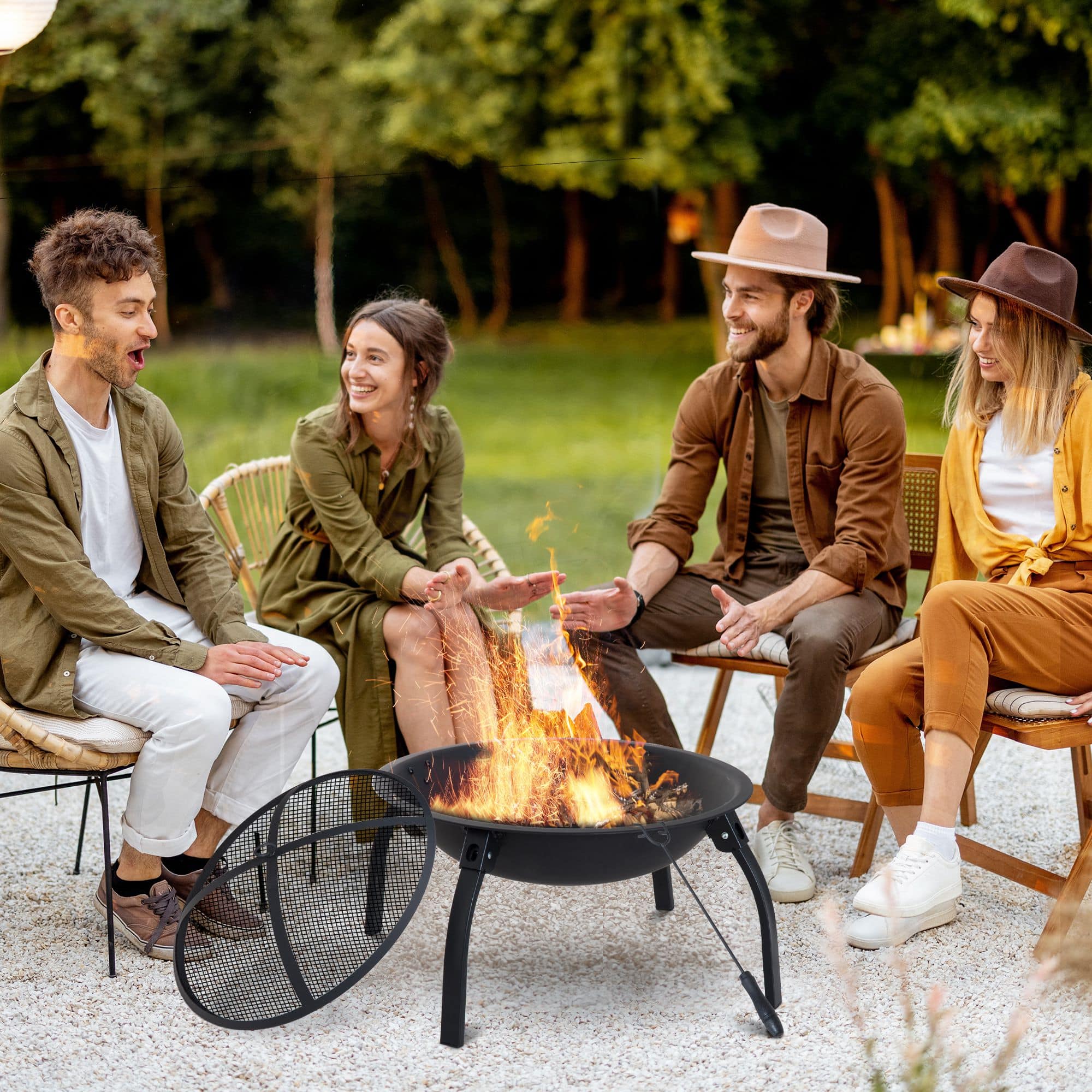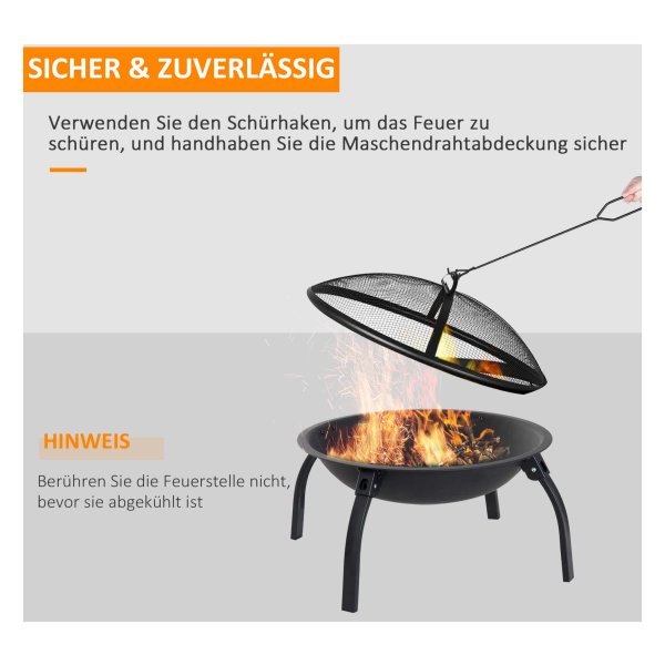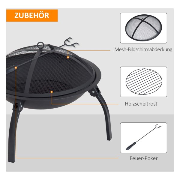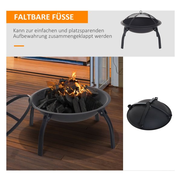 De vuurkorf staat op vier stabiele opvouwbare poten, waardoor je deze eenvoudig kunt opbergen en ruimte bespaart wanneer je de vuurkorf niet gebruikt. Zo kun je de vuurkorf gemakkelijk verplaatsen of opbergen wanneer dat nodig is, zonder dat het veel ruimte in beslag neemt.