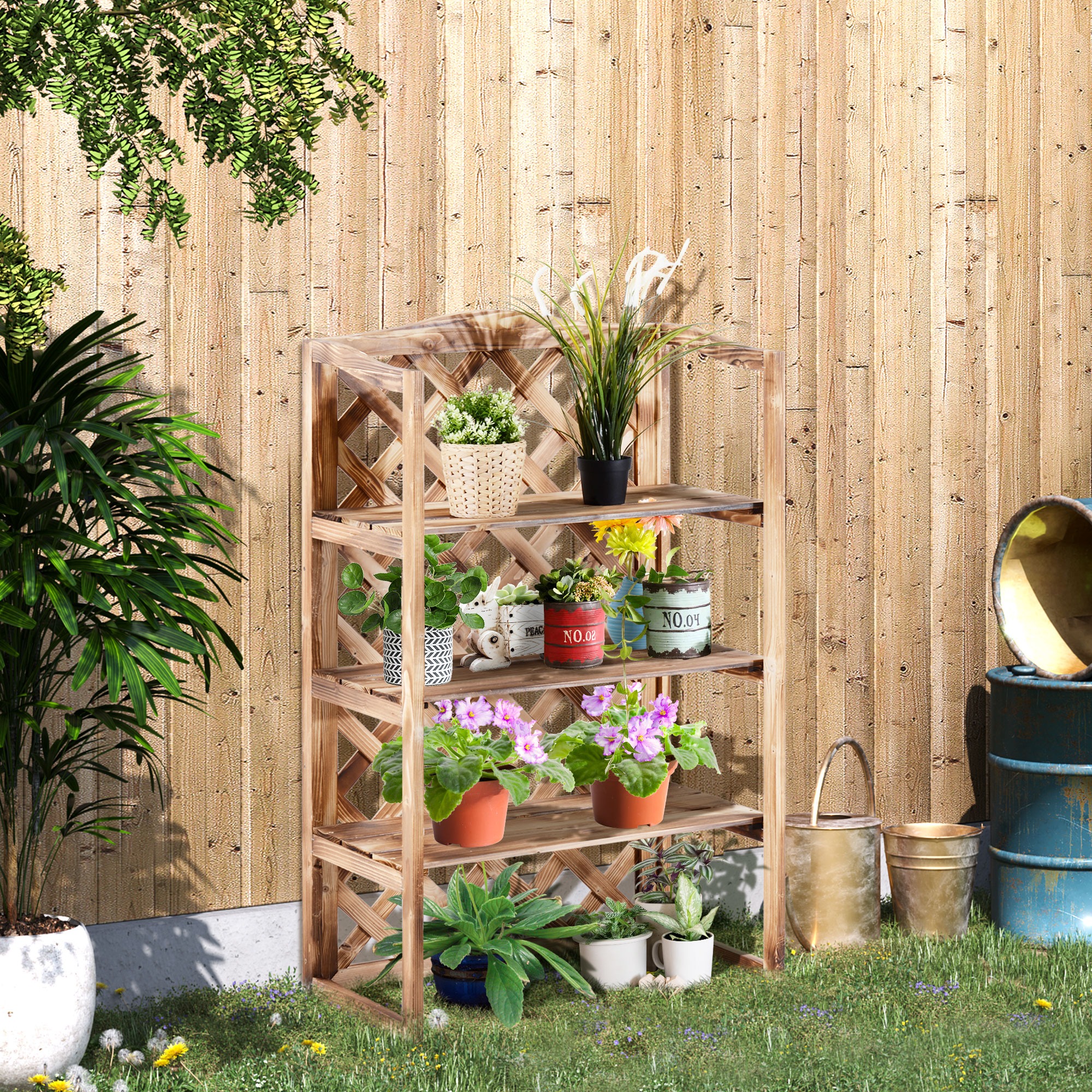 Met meerdere niveaus en ruime planken biedt dit dennenhoutbloemenrek voldoende ruimte voor het tentoonstellen van een verscheidenheid aan bloemen en planten. Creëer jouw eigen groene oase, waar je ook bent.