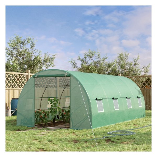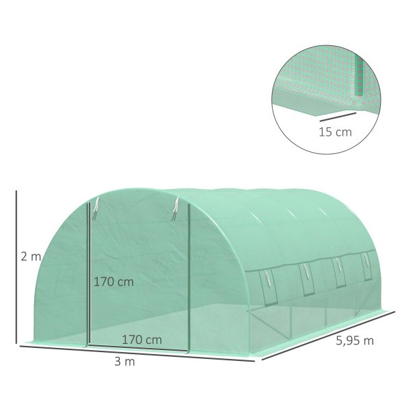 De kas is gemaakt van duurzaam materiaal en heeft een raam voor goede ventilatie. De groene kleur zorgt ervoor dat de kas mooi in uw tuin past. Met een afmeting van 590L x 300B x 200H cm biedt de kas voldoende ruimte om verschillende soorten groenten te planten en te laten groeien.