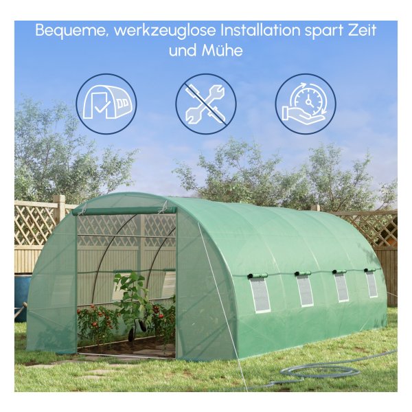 De Grashouse kas heeft een stabiele en roestbestendige structuur, waardoor u zich geen zorgen hoeft te maken over de stabiliteit van de kas. De montage van de kas is eenvoudig en gereedschap-vrij, waardoor u snel en gemakkelijk kunt beginnen met het kweken van uw gewassen.