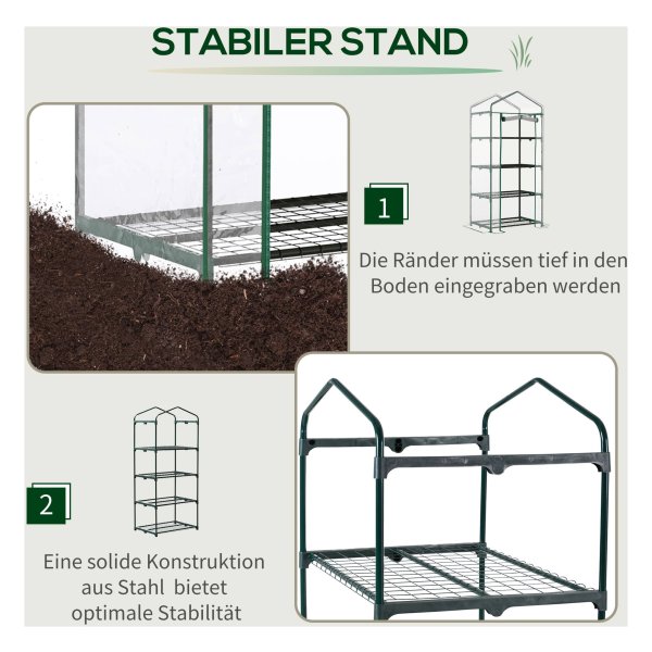 Met extra stalen pijpen als vloerkader is er een nog betere stabiliteit gegarandeerd, zodat je met een gerust hart je tomaten kunt verzorgen en zien groeien. De film van de kas is 10 cm langer aan de zijkanten dan de metalen pijpen, waardoor je deze gemakkelijk in de grond kunt verankeren voor extra stabiliteit.