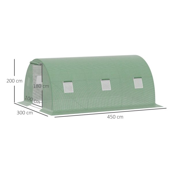 Polytunnel – Ruime 4,5 x 3 m – 6 raamopeningen – Vorstbescherming – Donkergroen