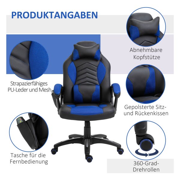 - Rugleuning met verwarmingsfunctie om uw rugspieren te ontspannen en verzachten.