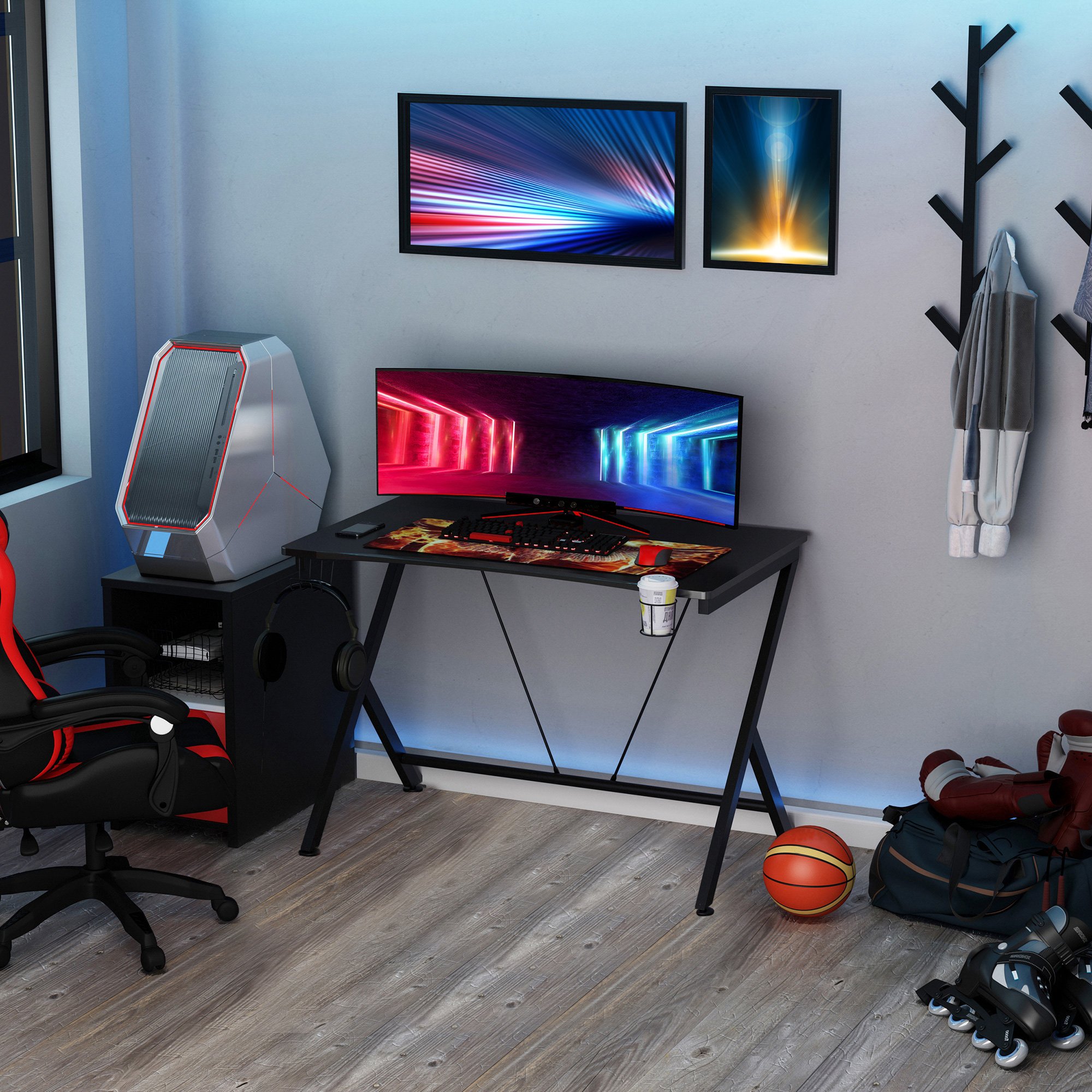 Gamingbureau – GamingX – hoofdtelefoon haak – drankhouder – zwart